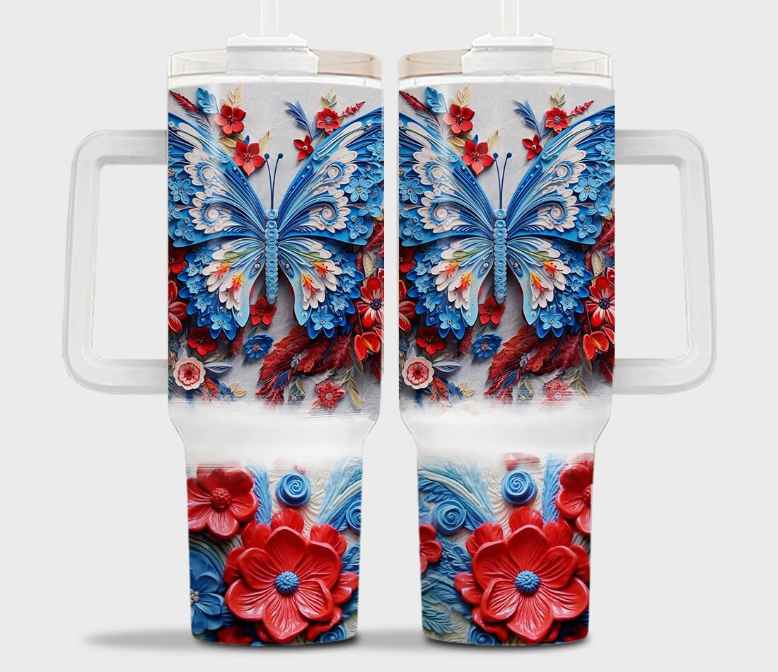 3D Patriotic Floral Butterfly Custom Stanley Cup 40 oz 30 oz Tumbler With HandleTVC2301966
