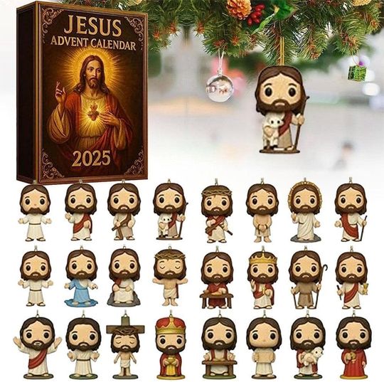 Advent of Jesus 2D Acrylic Advent Calendar 2025, Nativity Scene Christmas Countdown with 24 Figurines