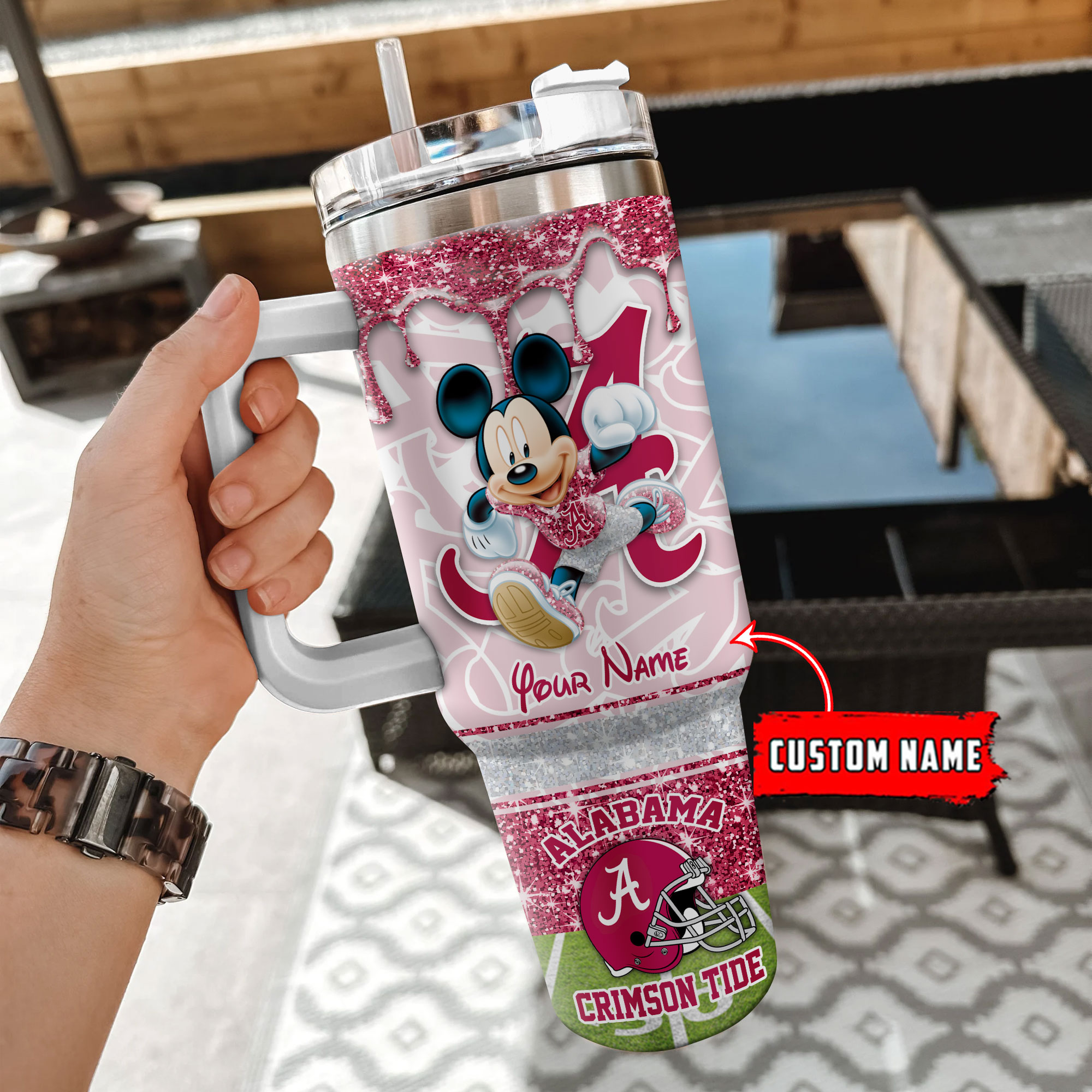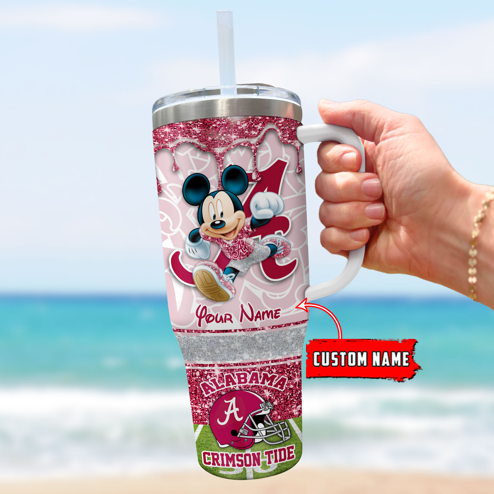 Alabama Crimson Tide NCAA Mickey Mouse Glitter Custom Stanley Cup 40 oz 30 oz Tumbler With HandleTVC230123