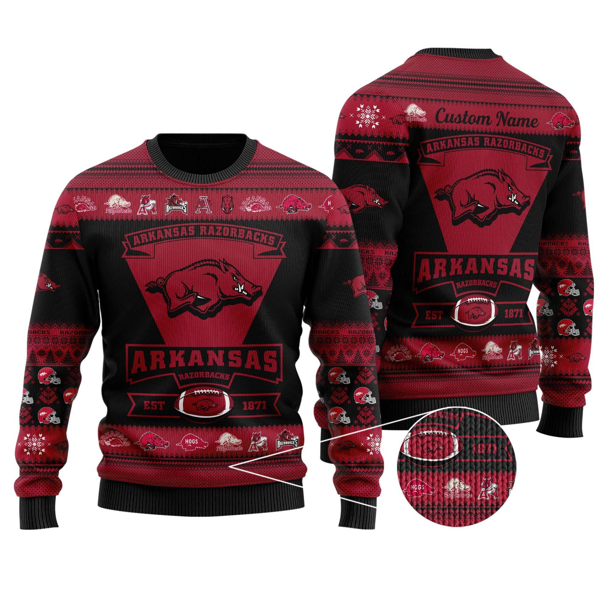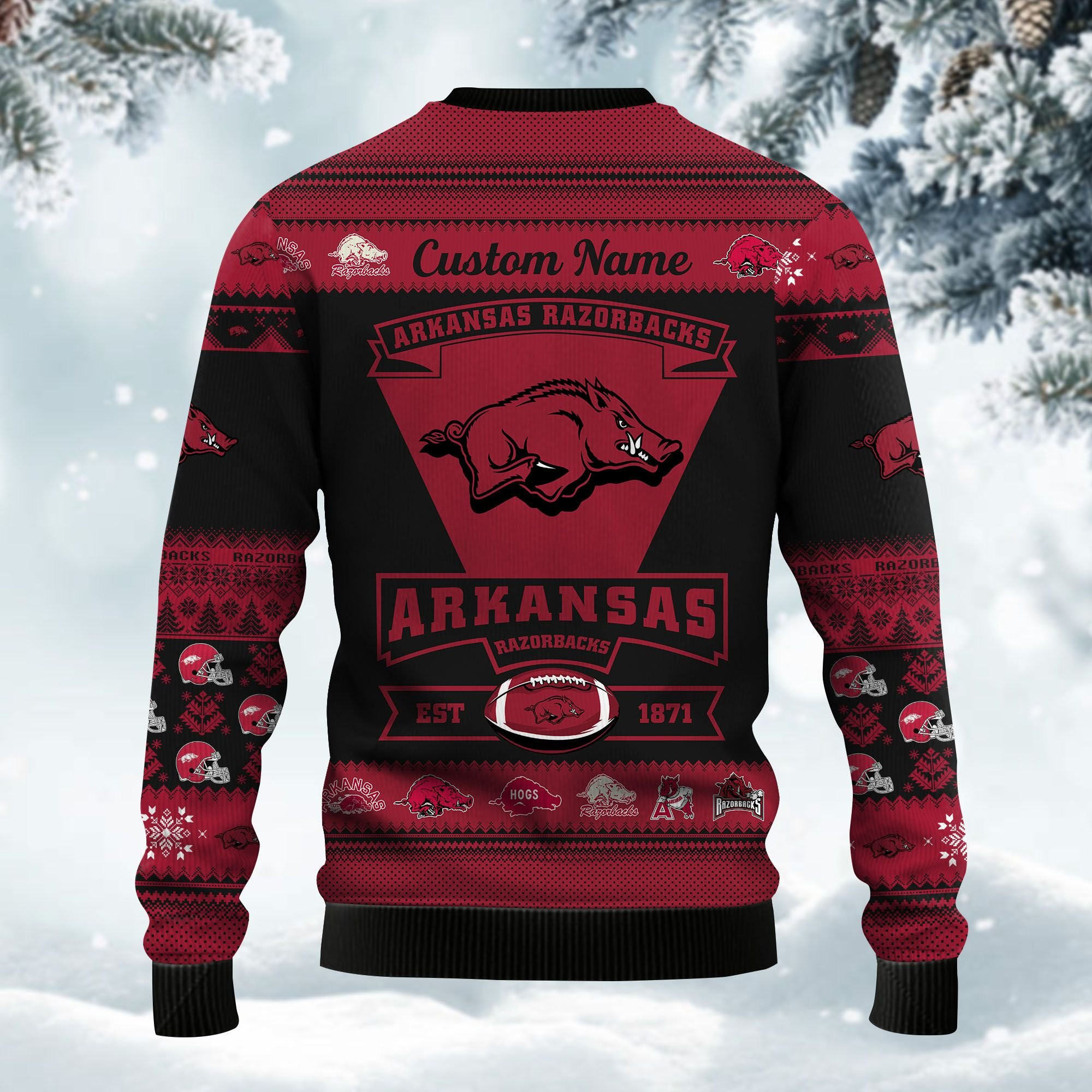 Be the first to review “Arkansas Razorbacks Football Team Logo Custom Name Personalized Ugly Christmas Sweater Adult 3D Funny Matching for family” Cancel reply
