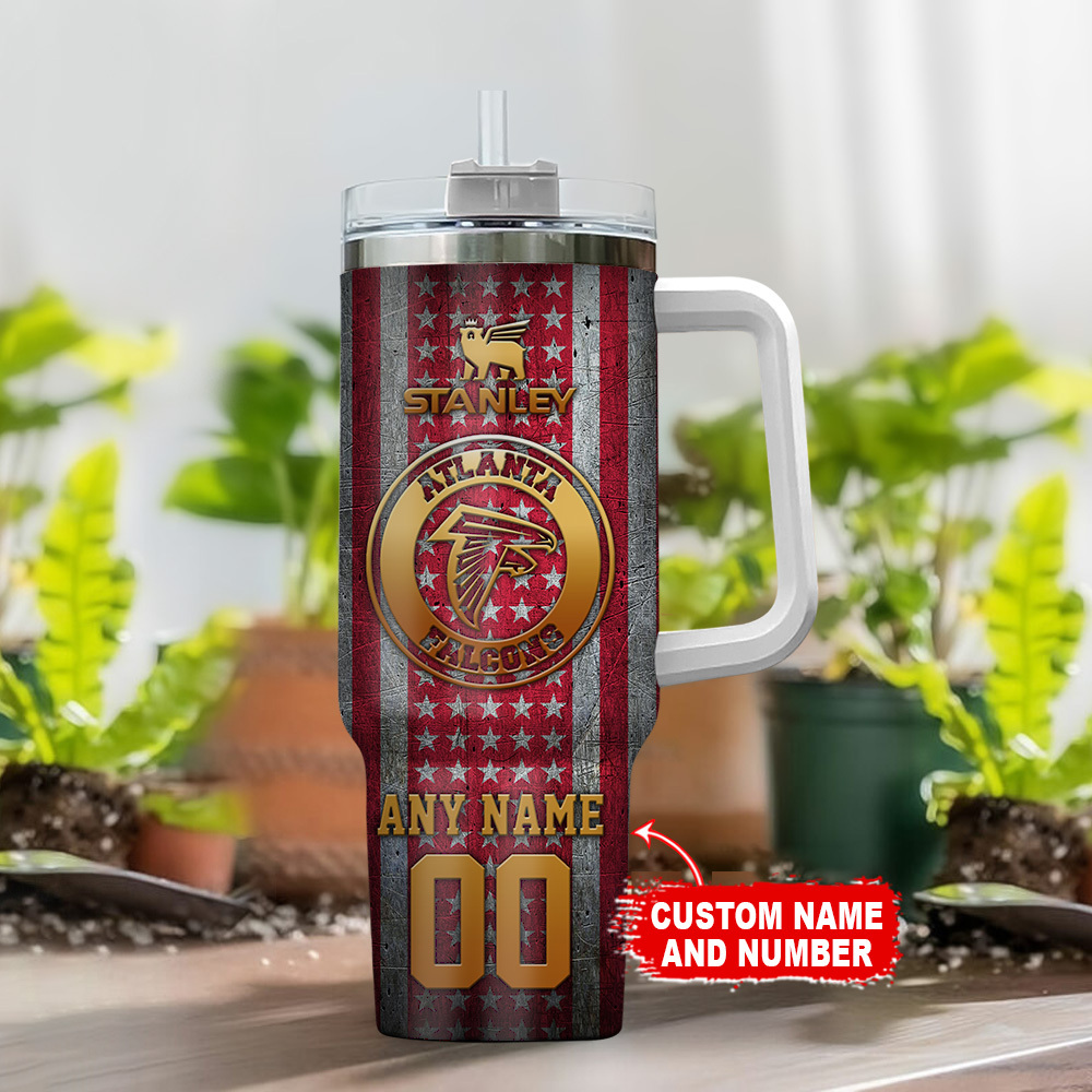 Atlanta Falcons NFL Golden Logos US Flag Custom Stanley Cup 40 oz 30 oz Tumbler With HandleTVC230180