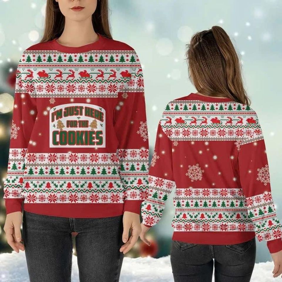 Baking Crew Christmas Sweater, Just Here For The Cookies Funny Gingerbread Pullover, Gift for Cookie Lovers”