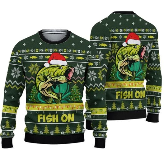 Be the first to review “Bass Fishing Fish On Christmas Hat Knitted Ugly 3D Sweater” Cancel reply