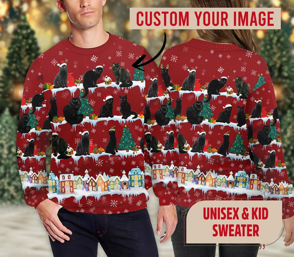 Be the first to review “Black Cat Christmas 3D Ugly Sweater, Custom Cat Photo Christmas Sweater,” Cancel reply