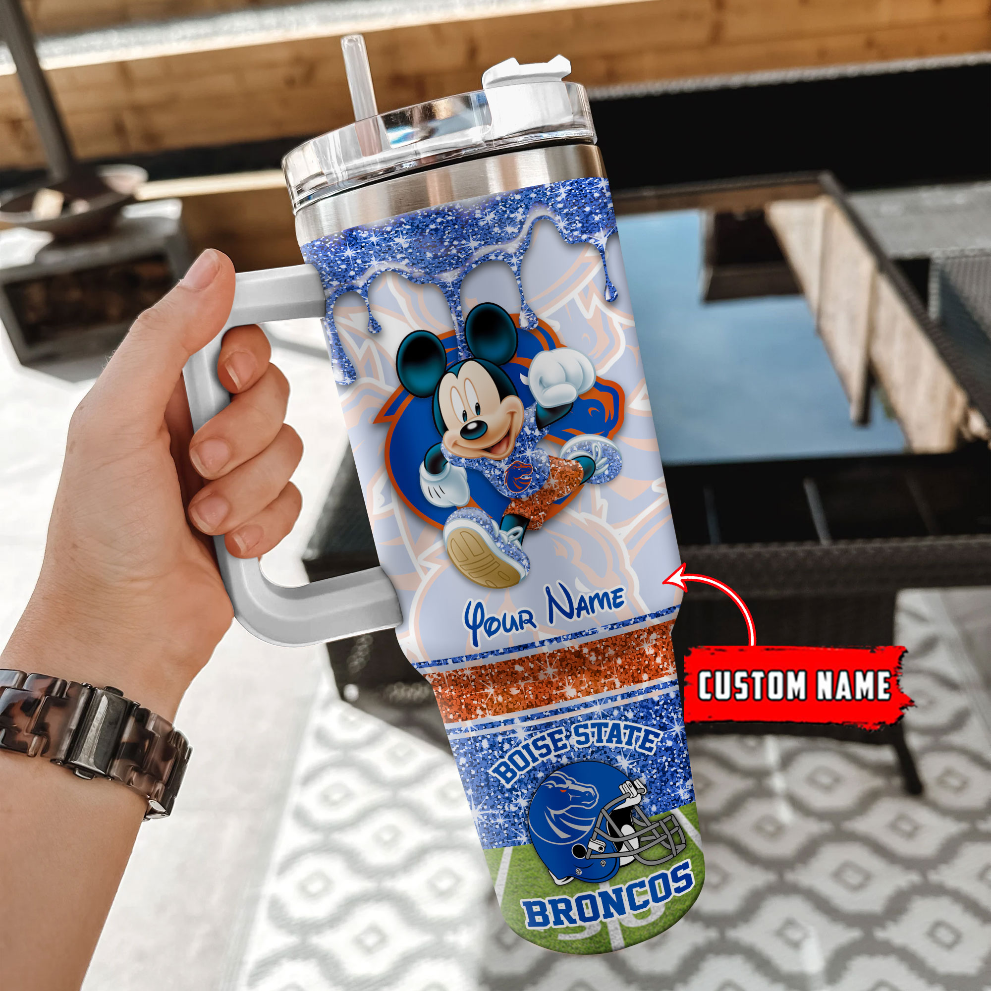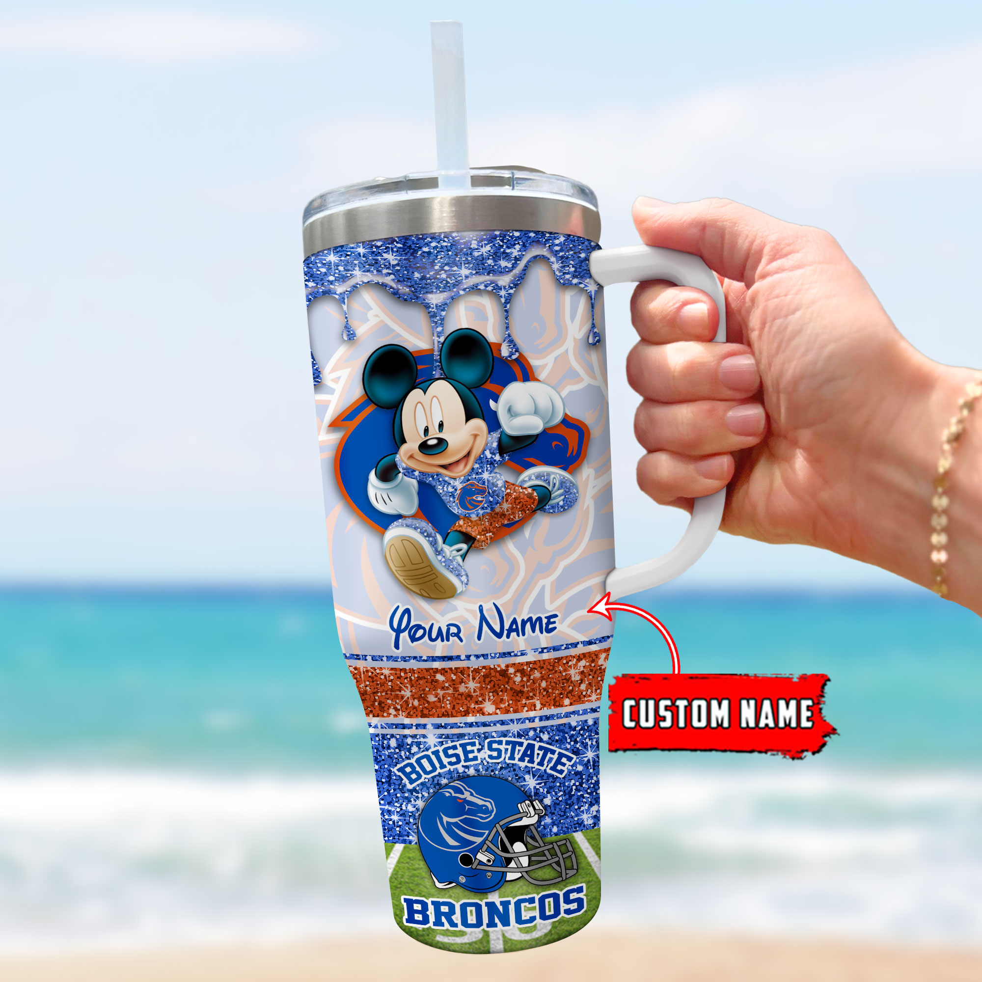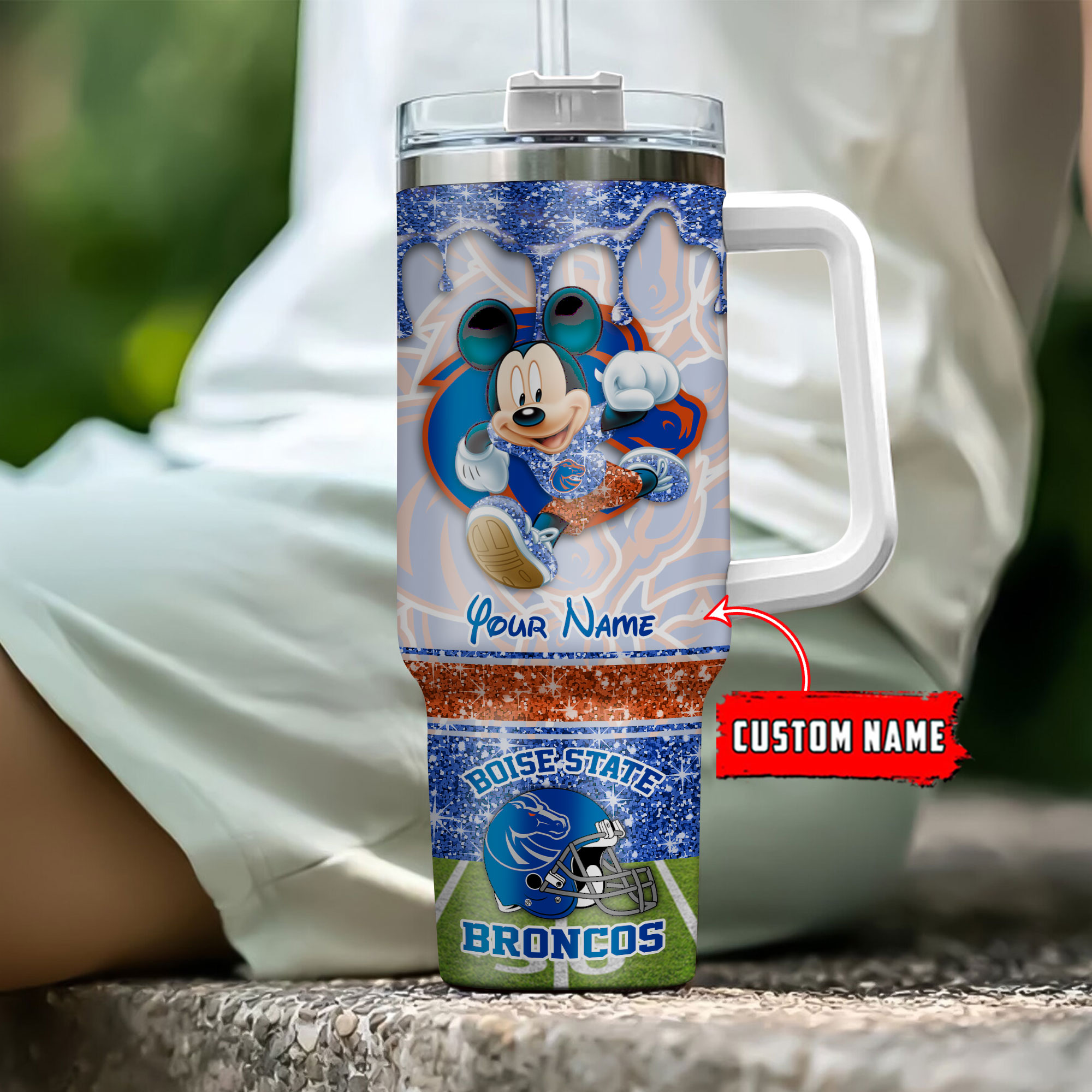 Boise State Broncos NCAA Mickey Mouse Glitter Custom Stanley Cup 40 oz 30 oz Tumbler With HandleTVC230123