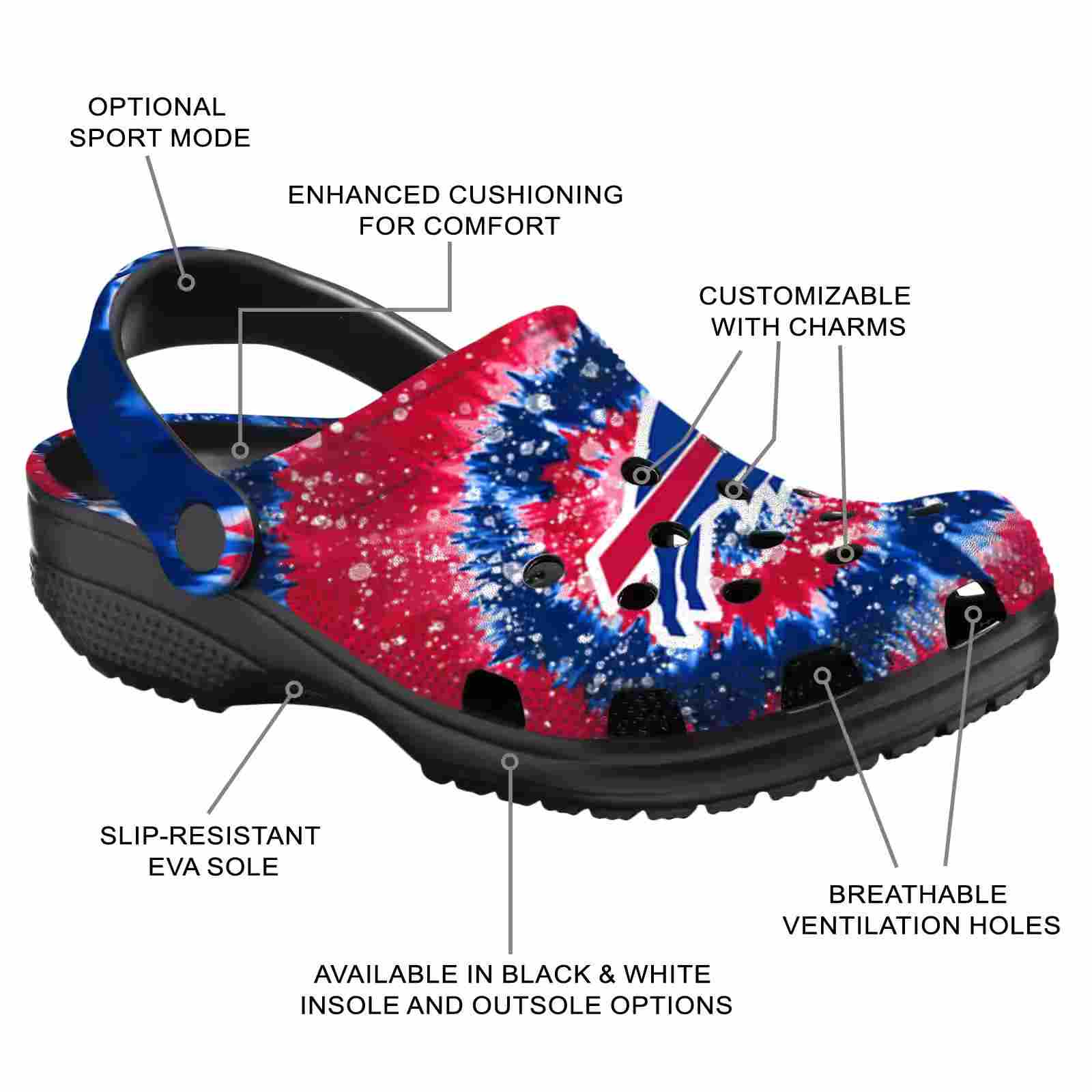 As part of our Buffalo Bills Crocs and NFL Crocs collections, these unique Clog are designed to let your love for your favorite shine bright.