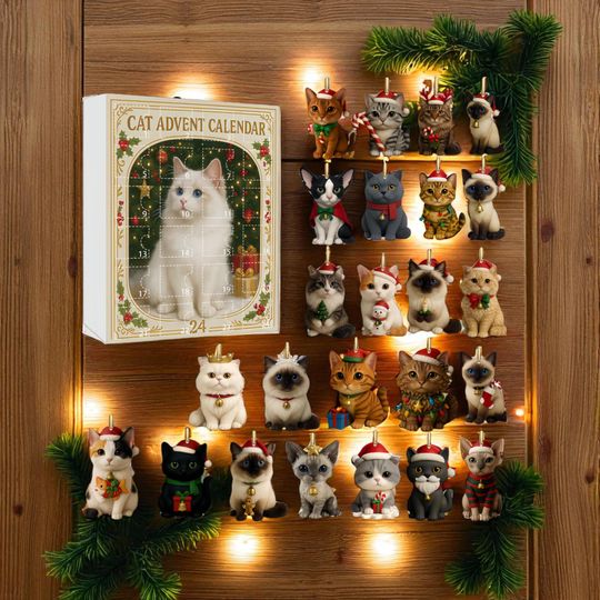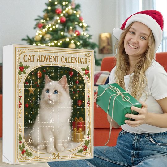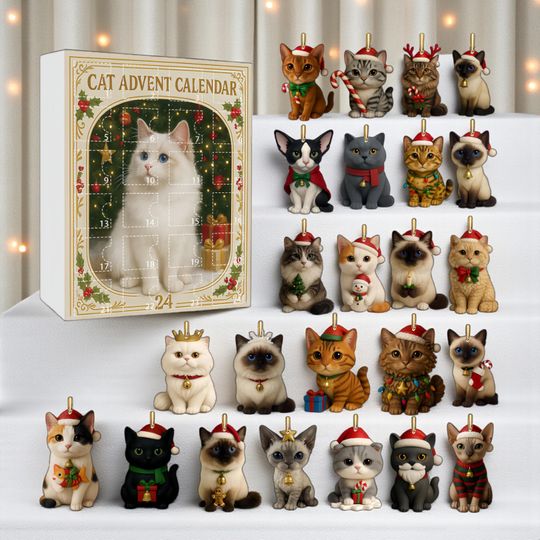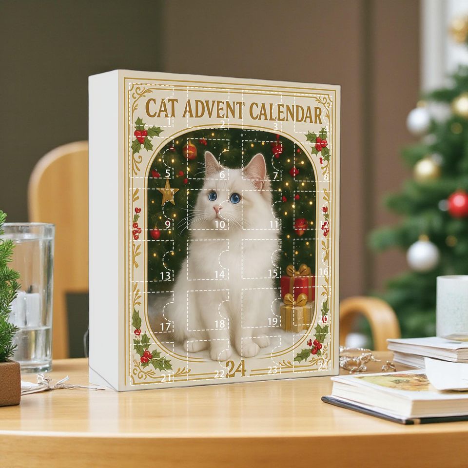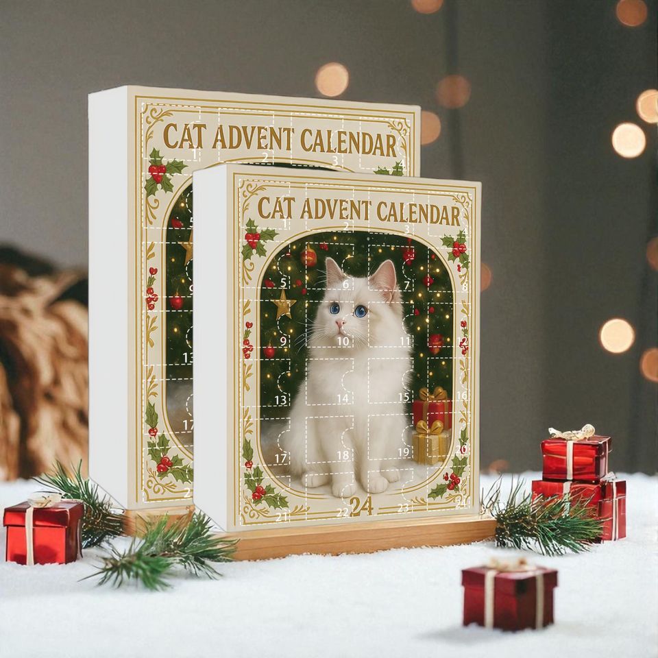 Cat Advent Calendar 2025, 24 Days of Christmas Countdown with Surprise Acrylic
