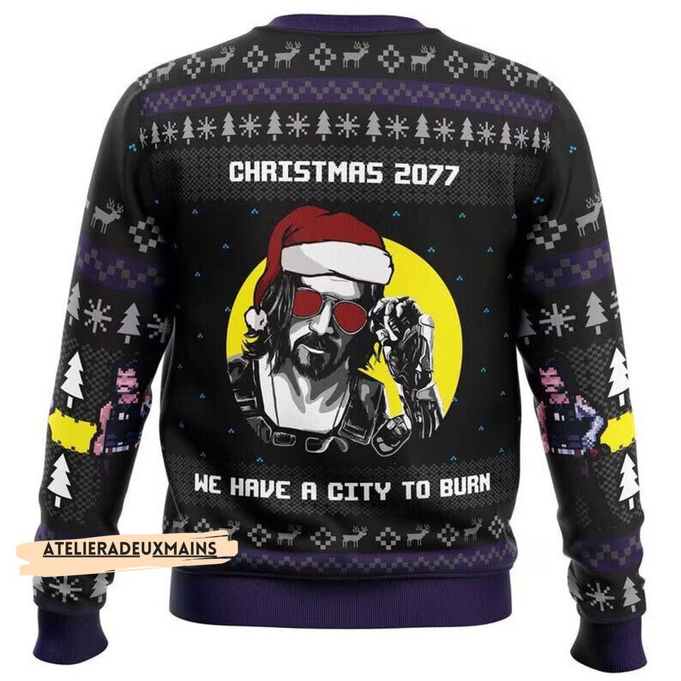 Christmas 2077 He Have A City To Burn Ugly Sweater, Funny Game Character Shirt