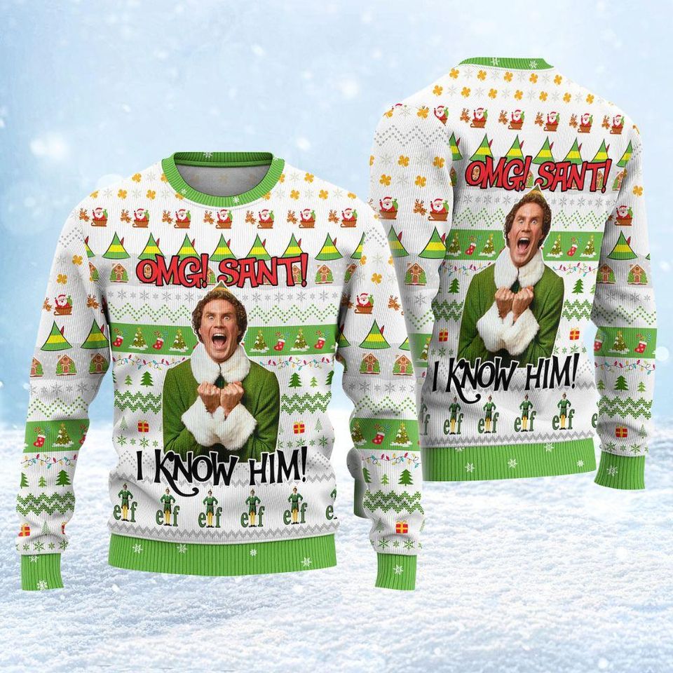 Christmas Elf Buddy Santa I Know Him Ugly Sweater, Funny Xmas Movie Sweatshirt