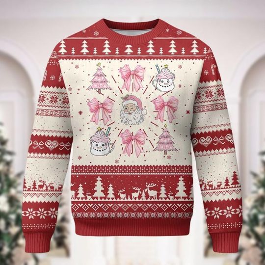 Be the first to review “Christmas Pink Coquette Bow Ugly Sweater, Vintage Santa Claus” Cancel reply