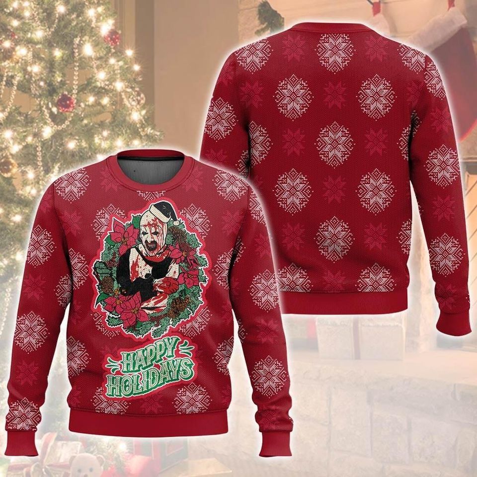 Christmas Terrifier Santa Ugly Sweatshirts, Scary Clown Ugly Sweatshirts, Art The Clown Gift
