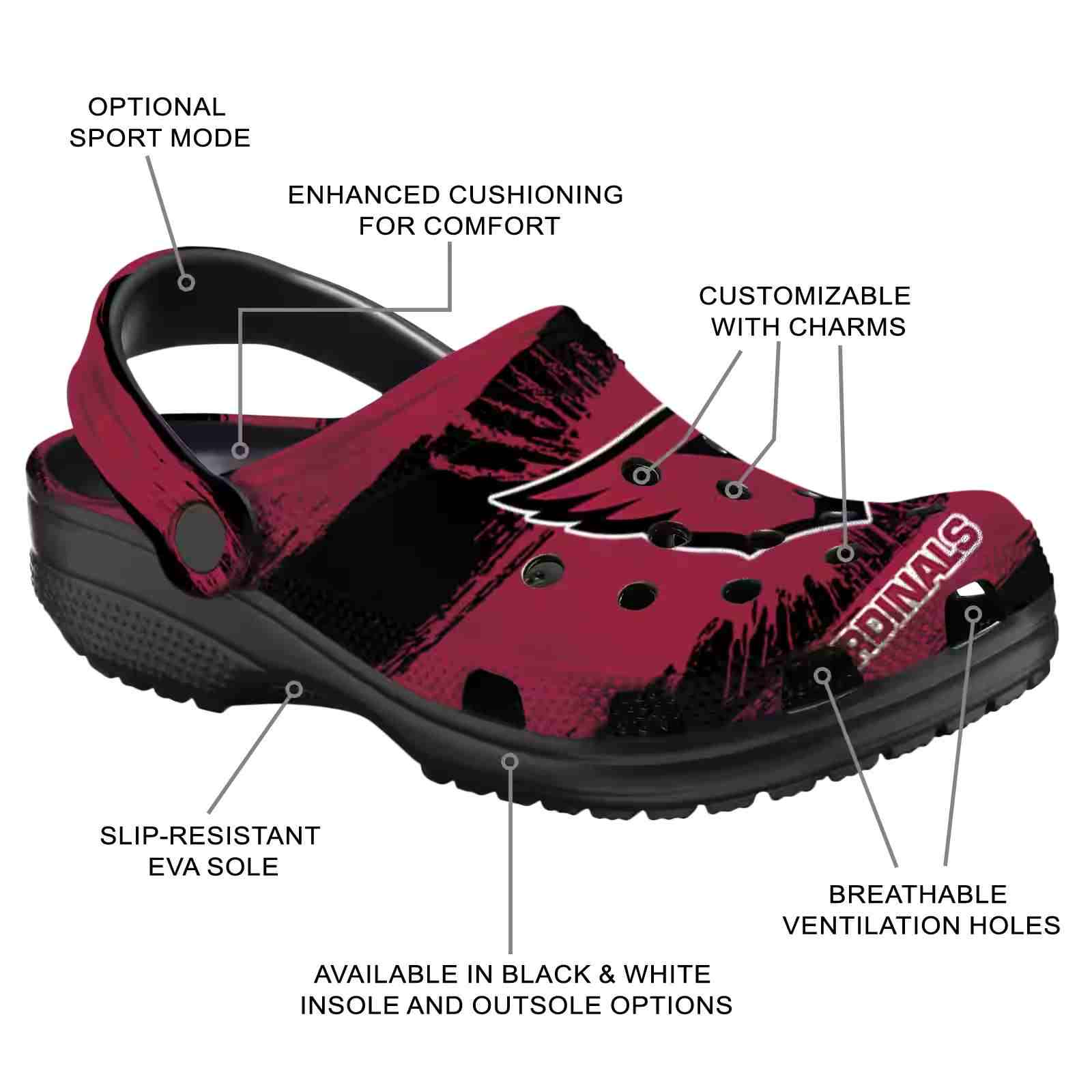 As part of our Arizona Cardinals Crocs and NFL Crocs collections, these unique Clog are designed to let your love for your favorite shine bright.