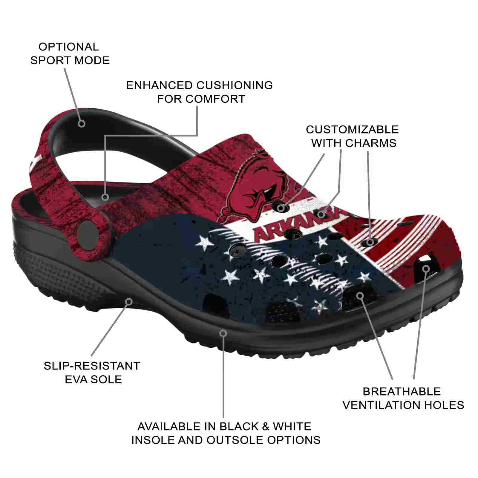 Custom Arkansas Razorbacks Star-Spangled Side Pattern ClogTVC1801975
