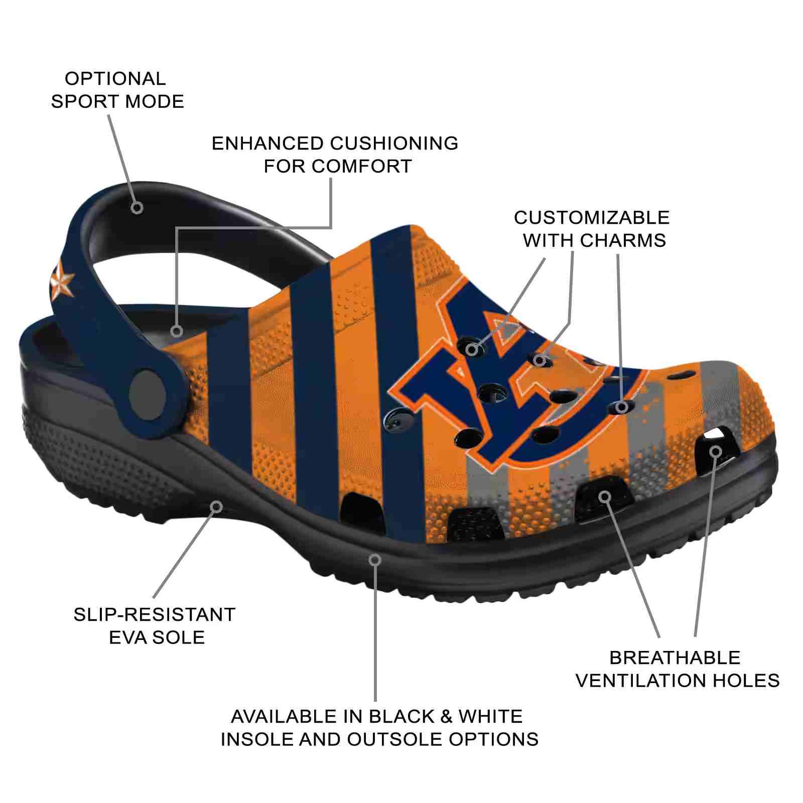 As part of our Auburn Tigers Crocs and NCAA Crocs collections, these unique Clog are designed to let your love for your favorite shine bright.