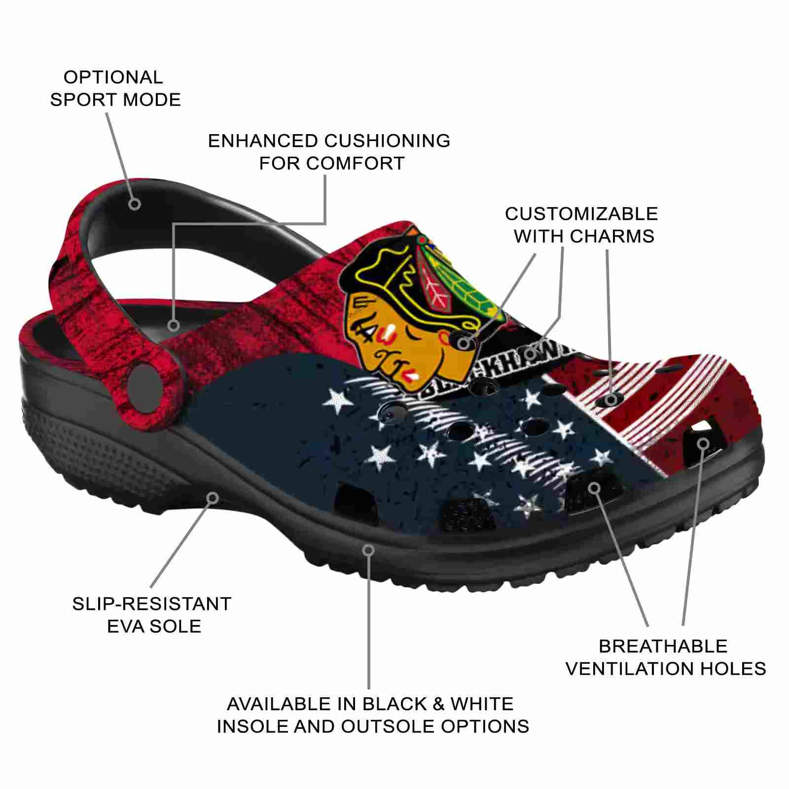Custom Chicago Blackhawks Star-Spangled Side Pattern ClogTVC1801857