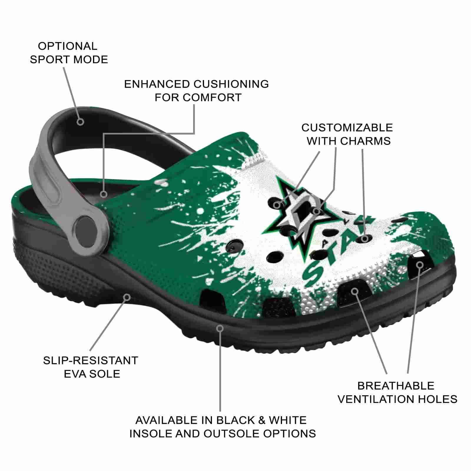 As part of our Dallas Stars Crocs and NHL Crocs collections, these unique Clog are designed to let your love for your favorite shine bright.