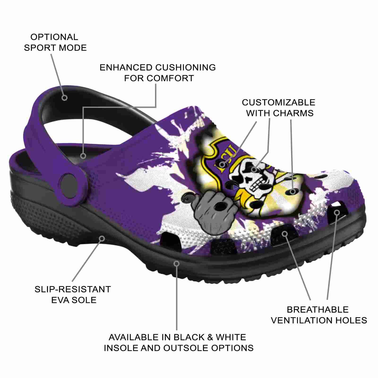 As part of our East Carolina Pirates Crocs and NCAA Crocs collections, these unique Clog are designed to let your love for your favorite shine bright.