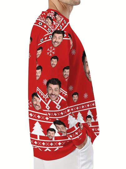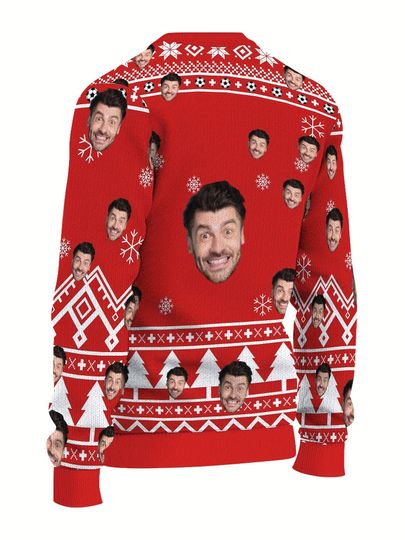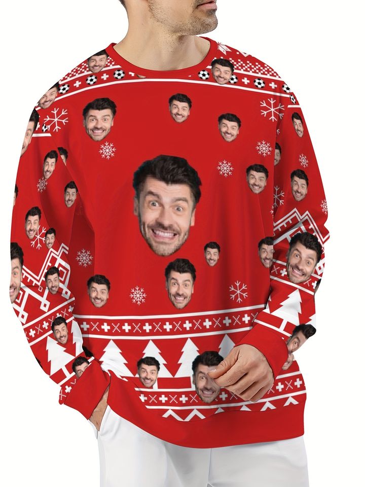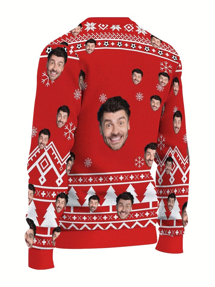 Custom Face Christmas Sweater – Reindeer & Snowflakes, Holiday Gift, Funny Holiday Sweater