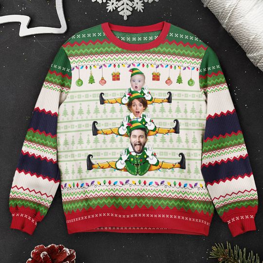 Be the first to review “Custom Face Family Funny Elf Christmas Tree – Personalized Photo Ugly Sweater” Cancel reply