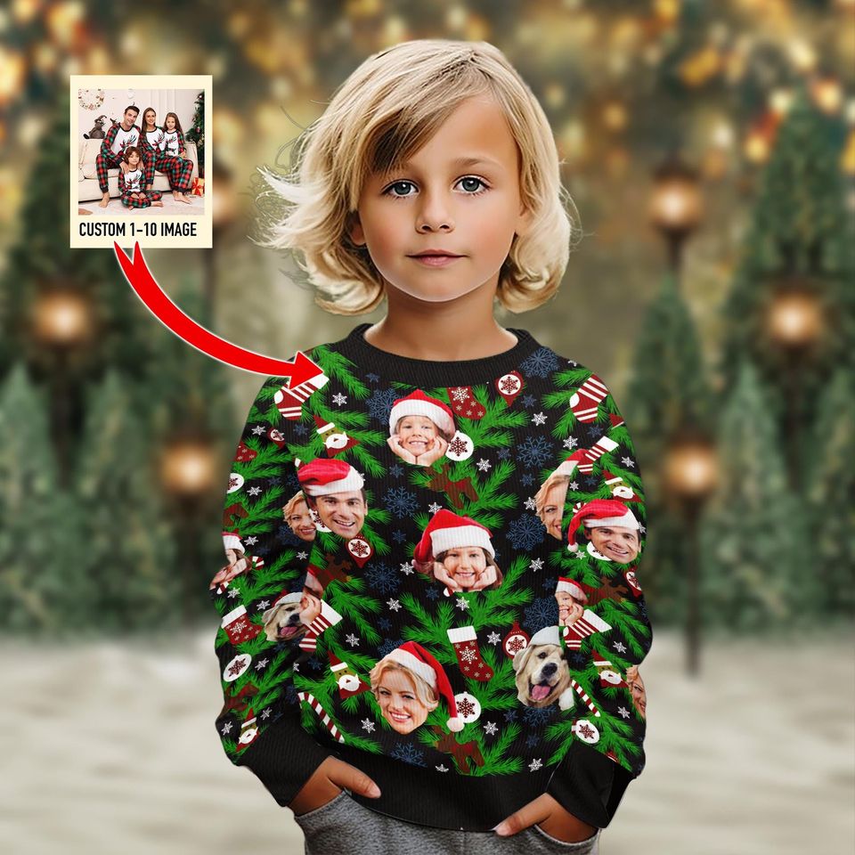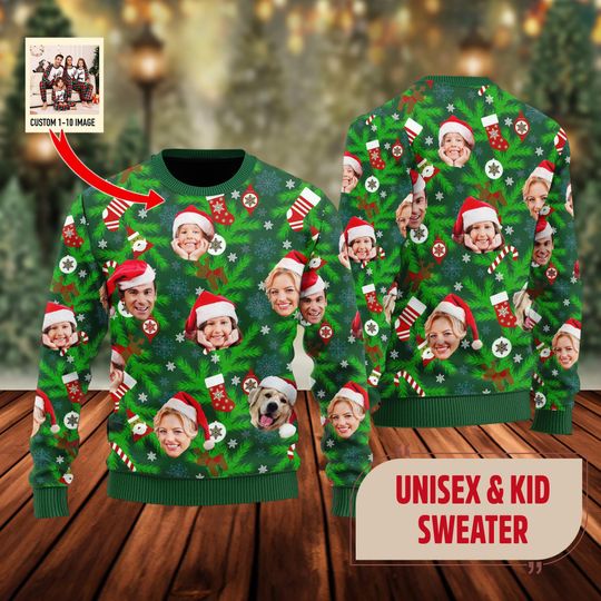 Be the first to review “Custom Face Family Leds Ugly Christmas Sweatshirt” Cancel reply
