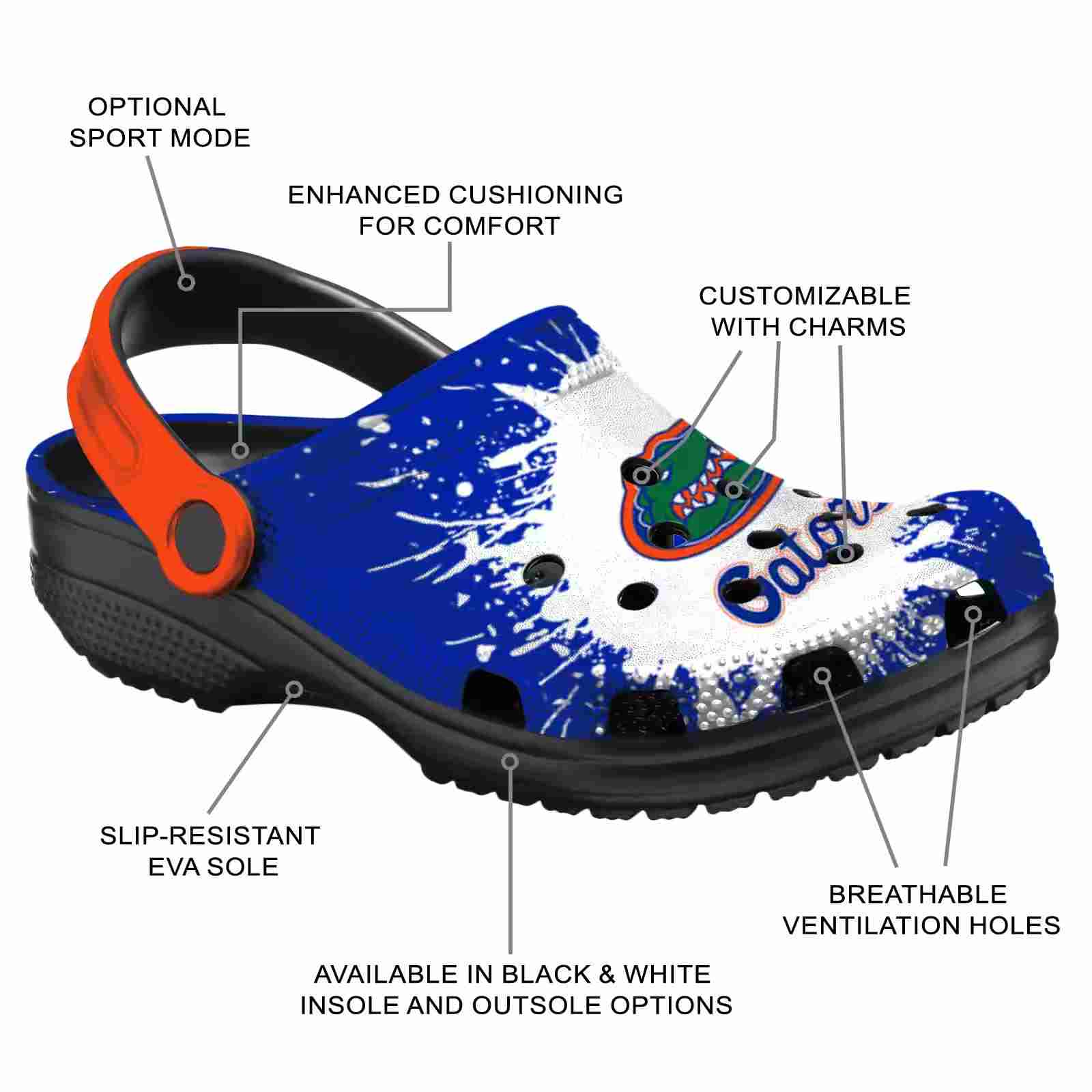 As part of our Florida Gators Crocs and NCAA Crocs collections, these unique Clog are designed to let your love for your favorite shine bright.