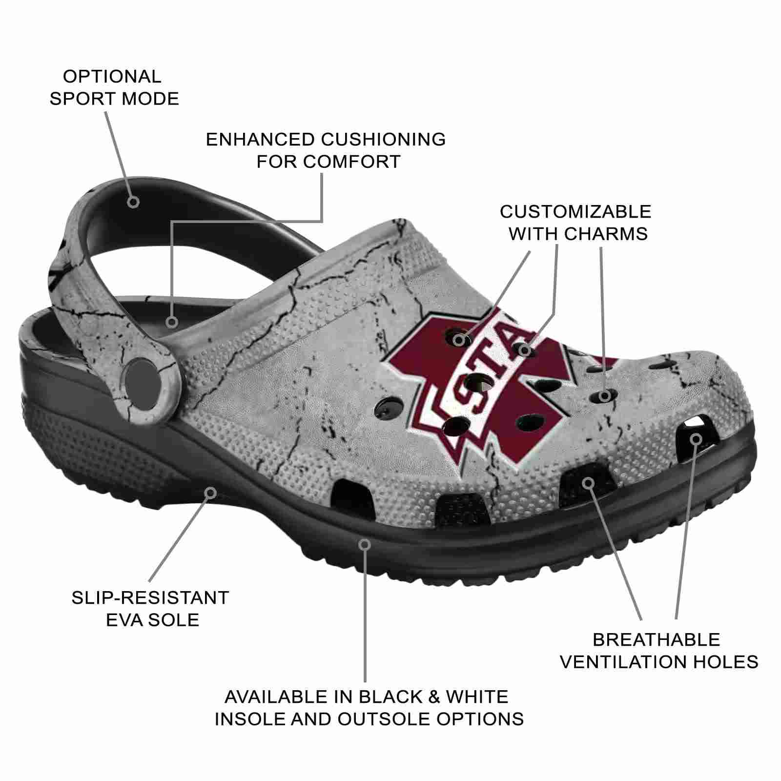 As part of our Mississippi State Bulldogs Crocs and NCAA Crocs collections, these unique Clog are designed to let your love for your favorite shine bright.
