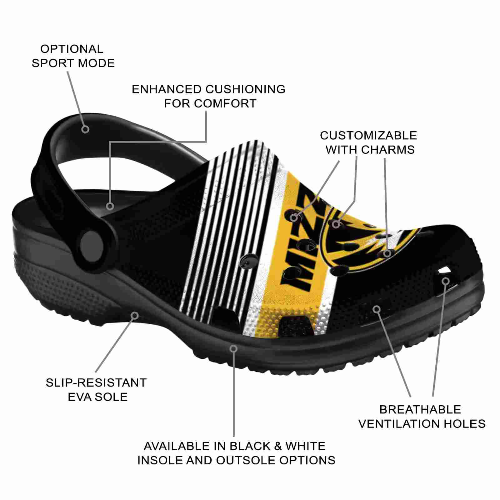 As part of our Missouri Tigers Crocs and NCAA Crocs collections, these unique Clog are designed to let your love for your favorite shine bright.