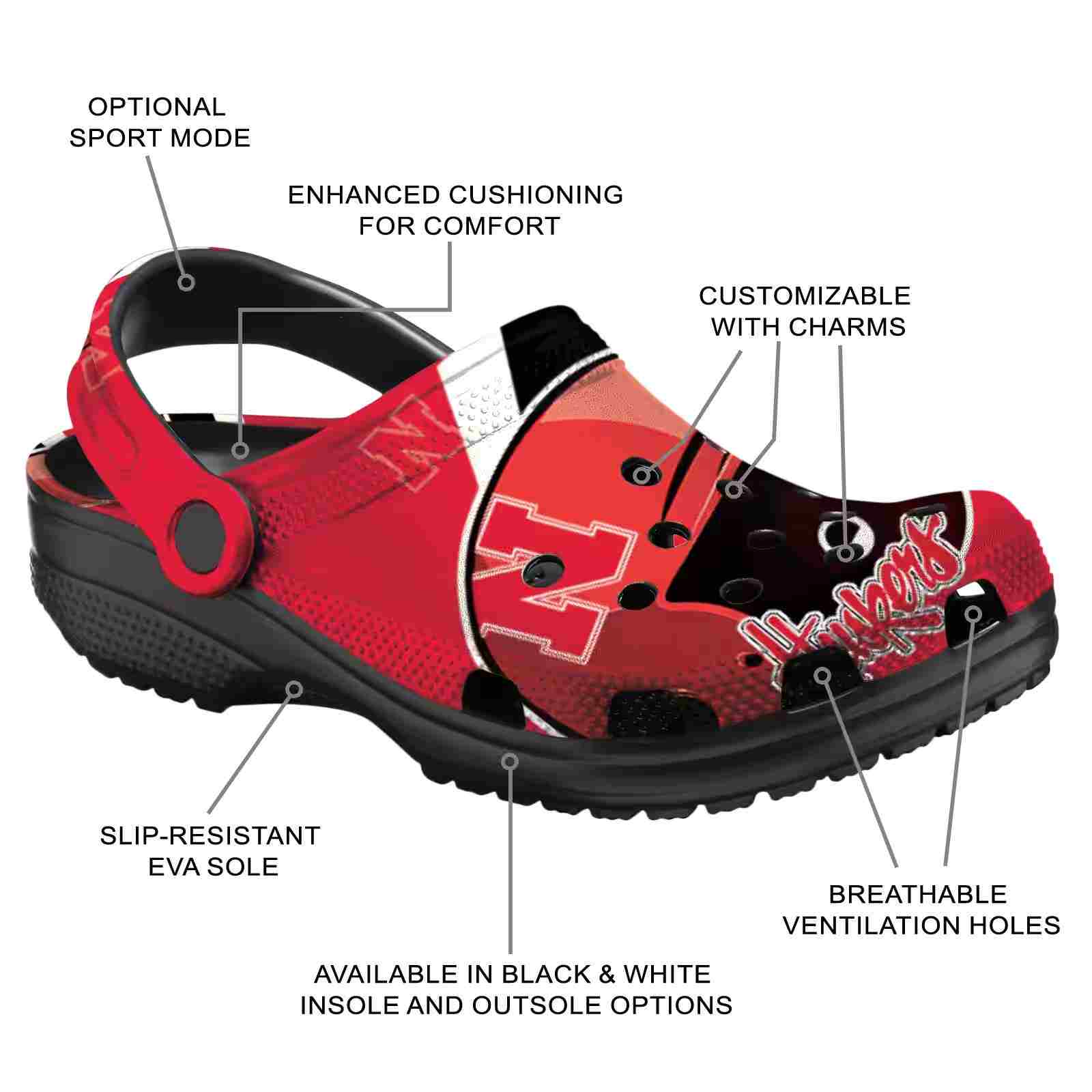 As part of our Nebraska Cornhuskers Crocs and NCAA Crocs collections, these unique Clog are designed to let your love for your favorite shine bright.