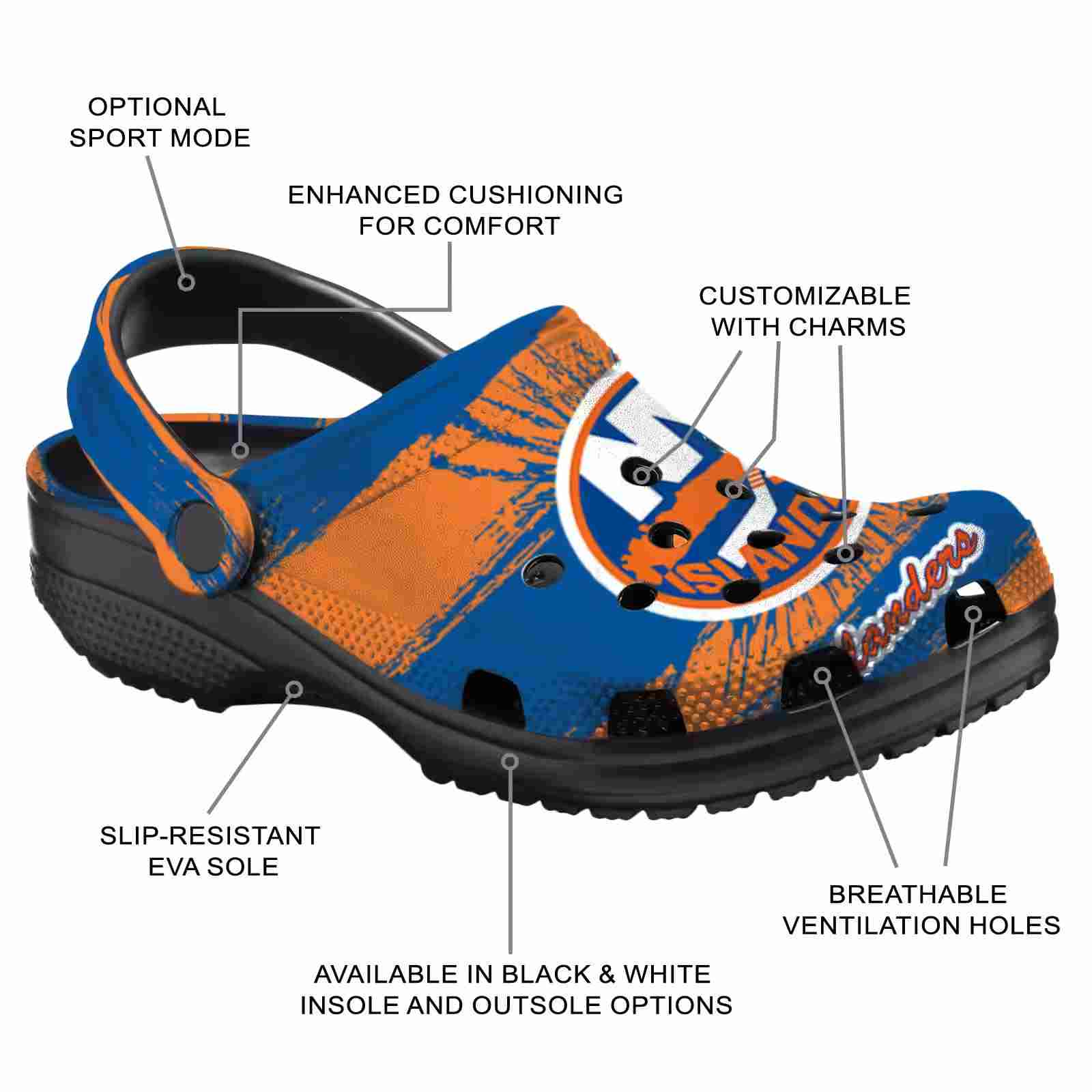 As part of our New York Islanders Crocs and NHL Crocs collections, these unique Clog are designed to let your love for your favorite shine bright.