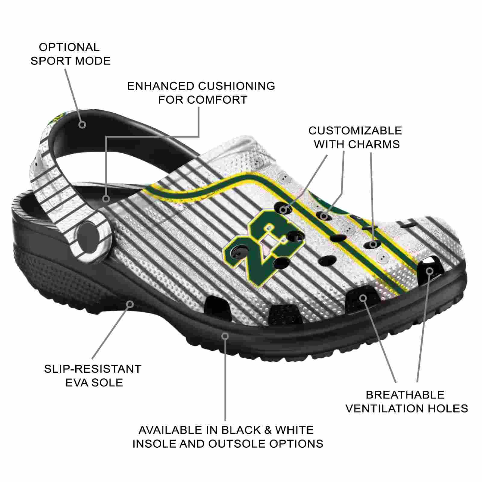 As part of our Oregon Ducks Crocs and NCAA Crocs collections, these unique Clog are designed to let your love for your favorite shine bright.