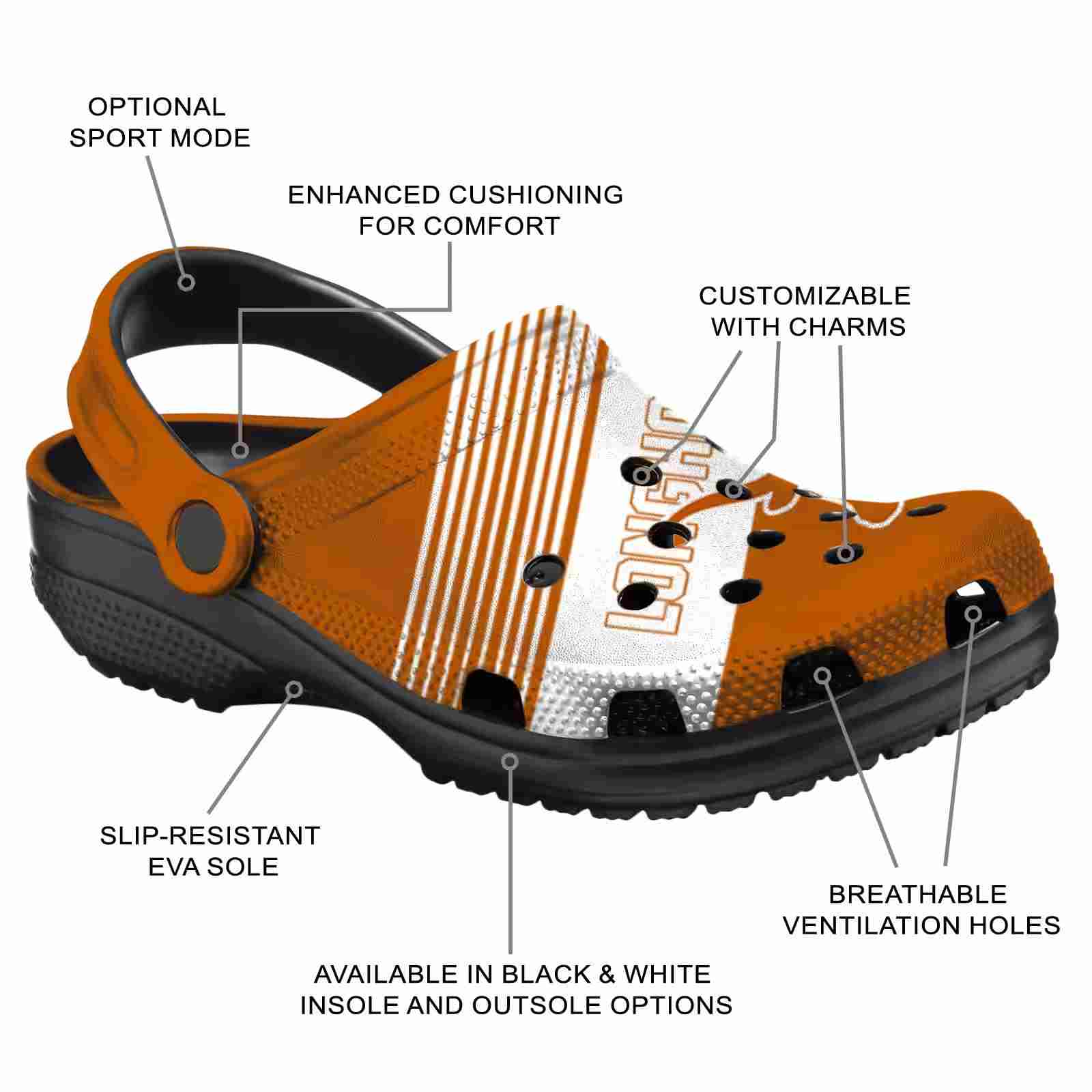 As part of our Texas Longhorns Crocs and NCAA Crocs collections, these unique Clog are designed to let your love for your favorite shine bright.
