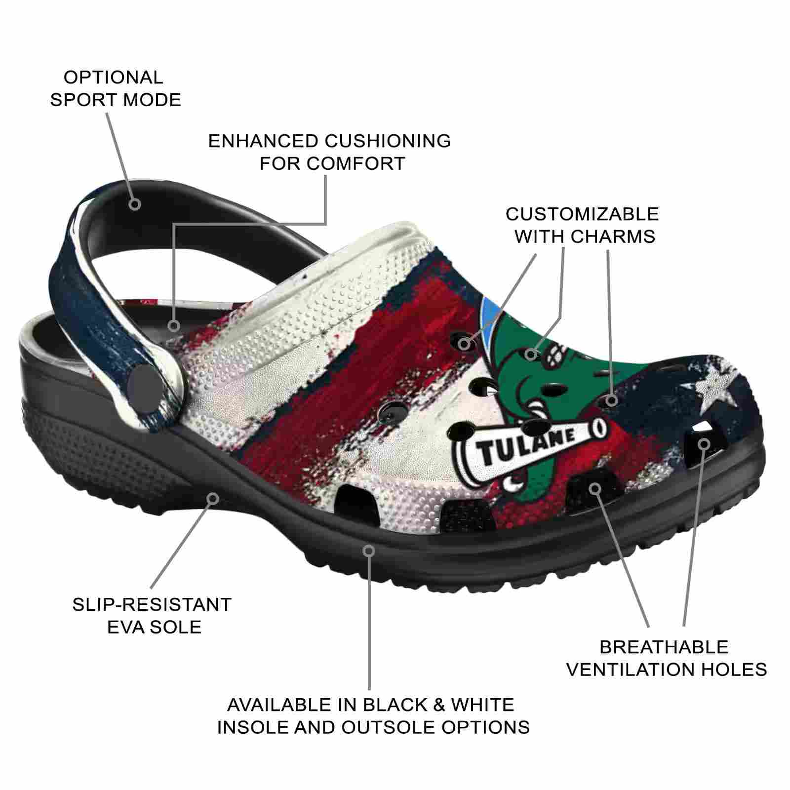 As part of our Tulane Green Wave Crocs and NCAA Crocs collections, these unique Clog are designed to let your love for your favorite shine bright.
