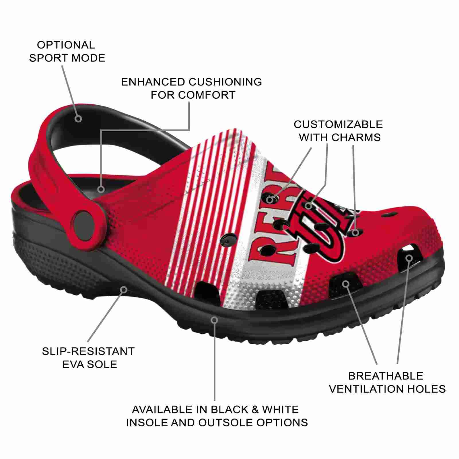 As part of our UNLV Rebels Crocs and NCAA Crocs collections, these unique Clog are designed to let your love for your favorite shine bright.