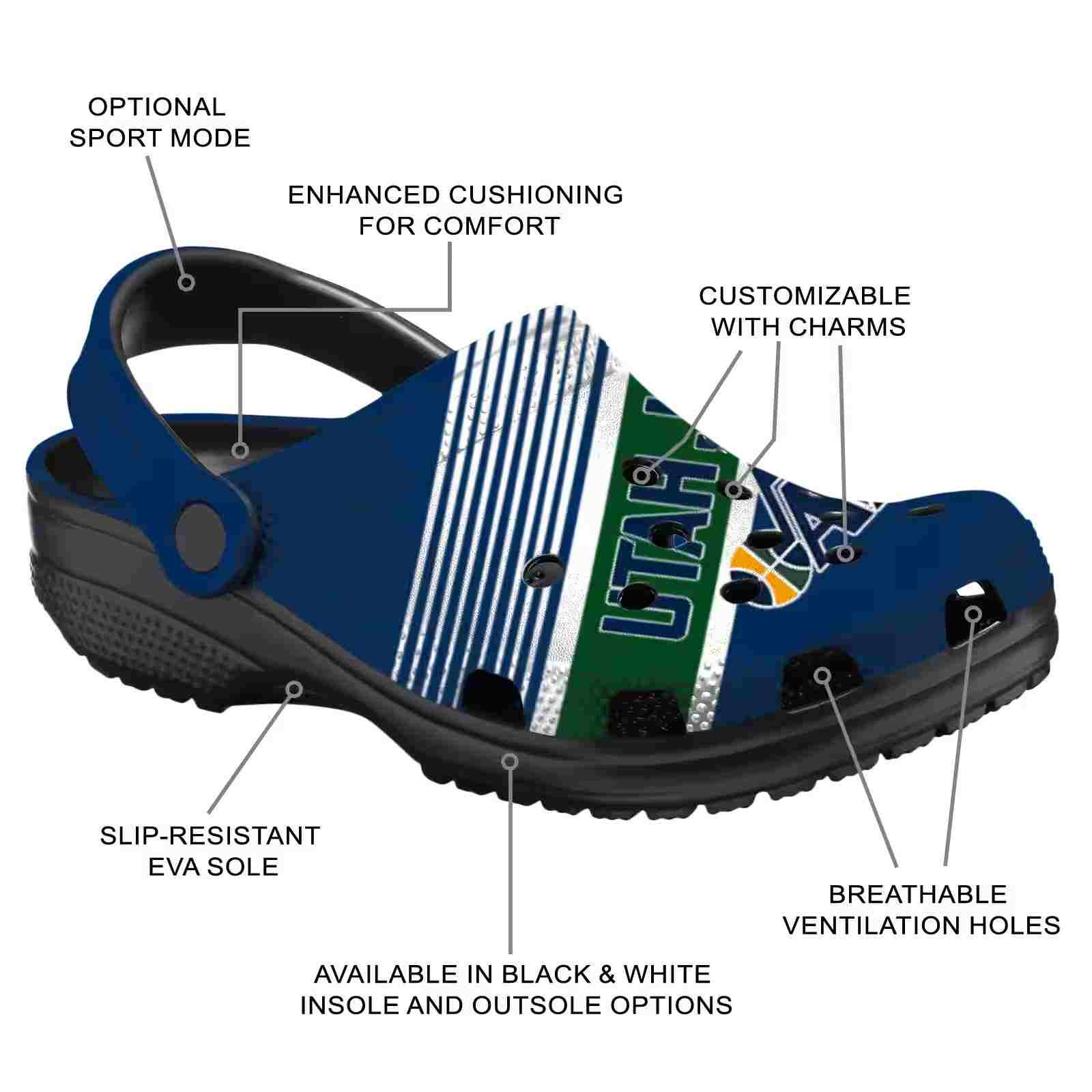 As part of our Utah Jazz Crocs and NBA Crocs collections, these unique Clog are designed to let your love for your favorite shine bright.