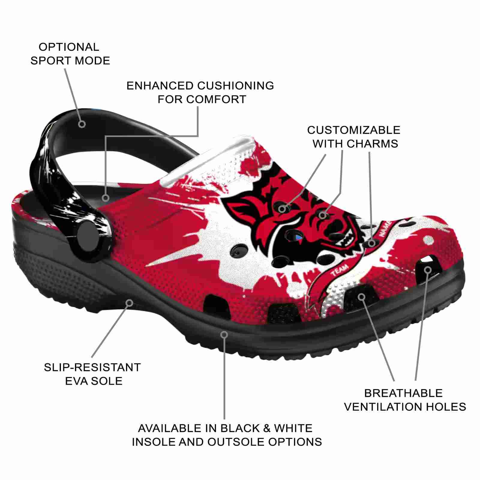Customized Arkansas State Red Wolves Splatter Pattern ClogTVC1801742