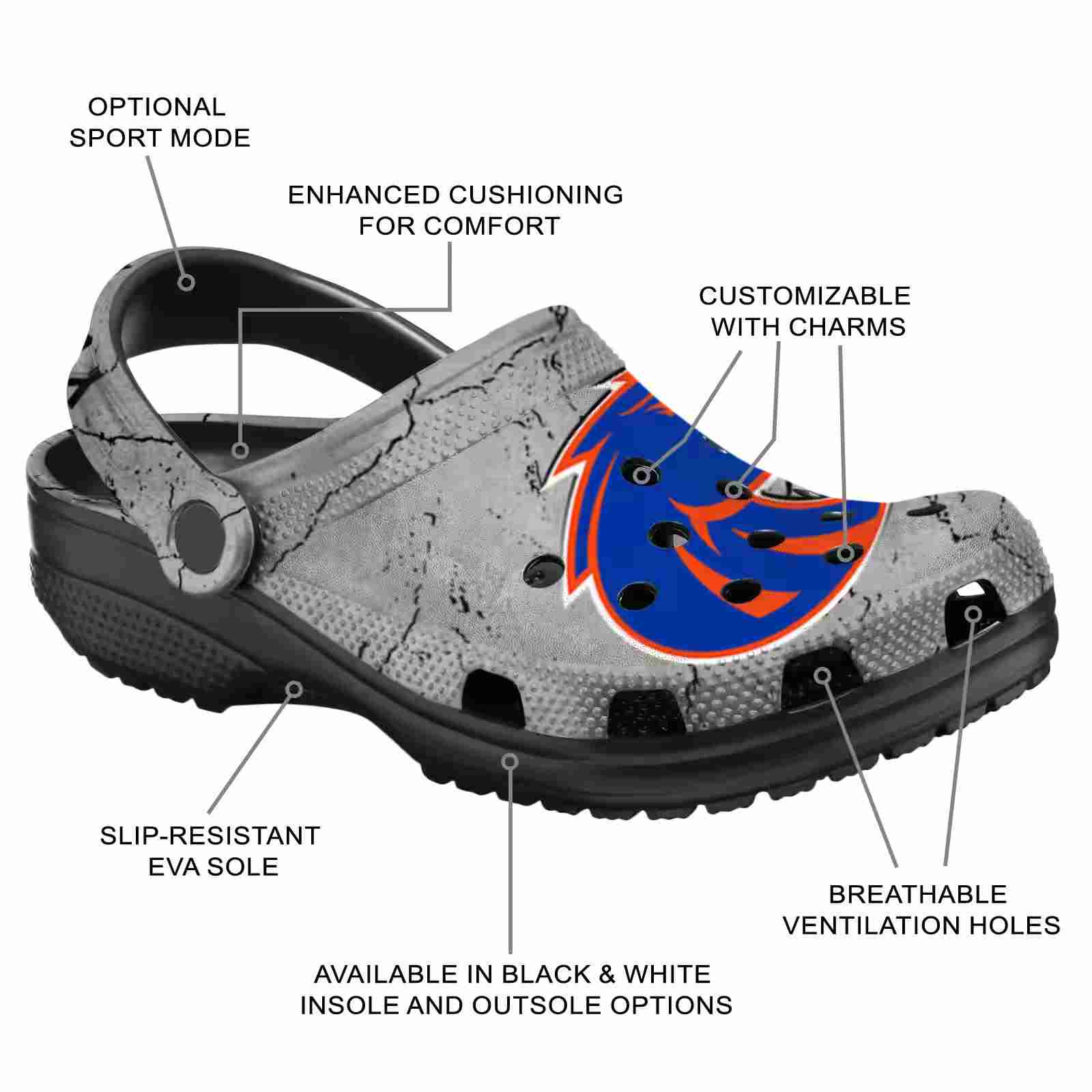 As part of our Boise State Broncos Crocs and NCAA Crocs collections, these unique Clog are designed to let your love for your favorite shine bright.