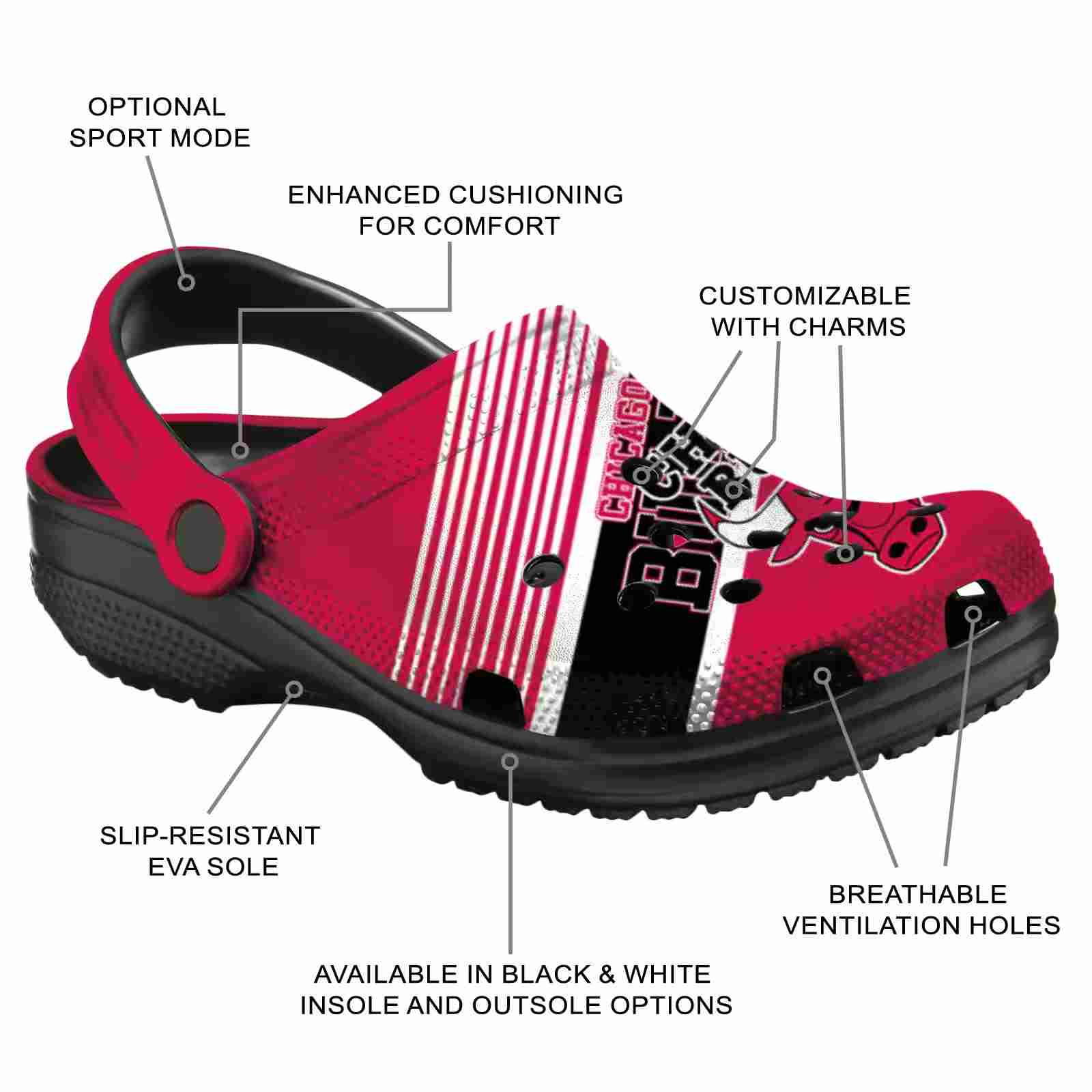 As part of our Chicago Bulls Crocs and NBA Crocs collections, these unique Clog are designed to let your love for your favorite shine bright.