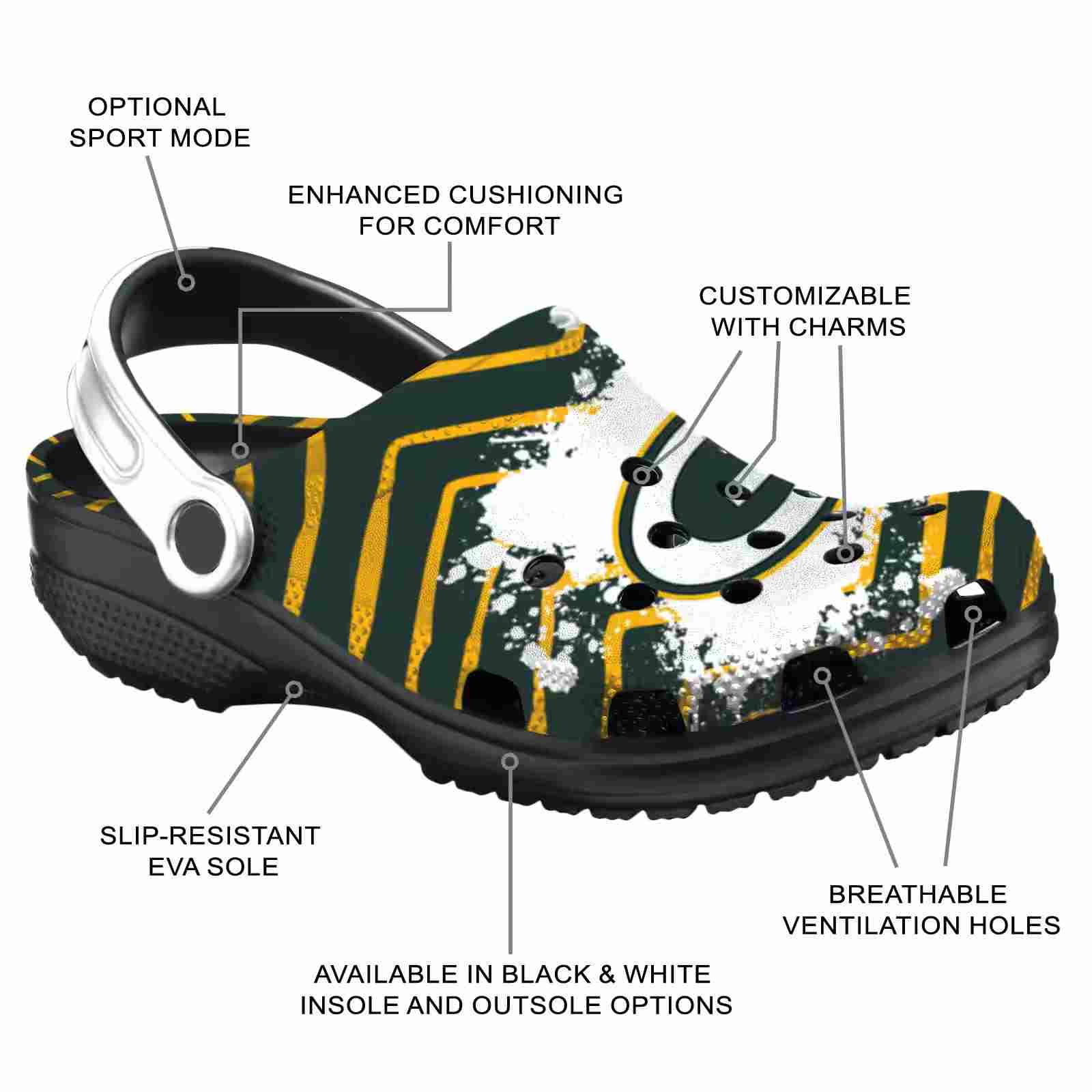 As part of our Green Bay Packers Crocs and NFL Crocs collections, these unique Clog are designed to let your love for your favorite shine bright.