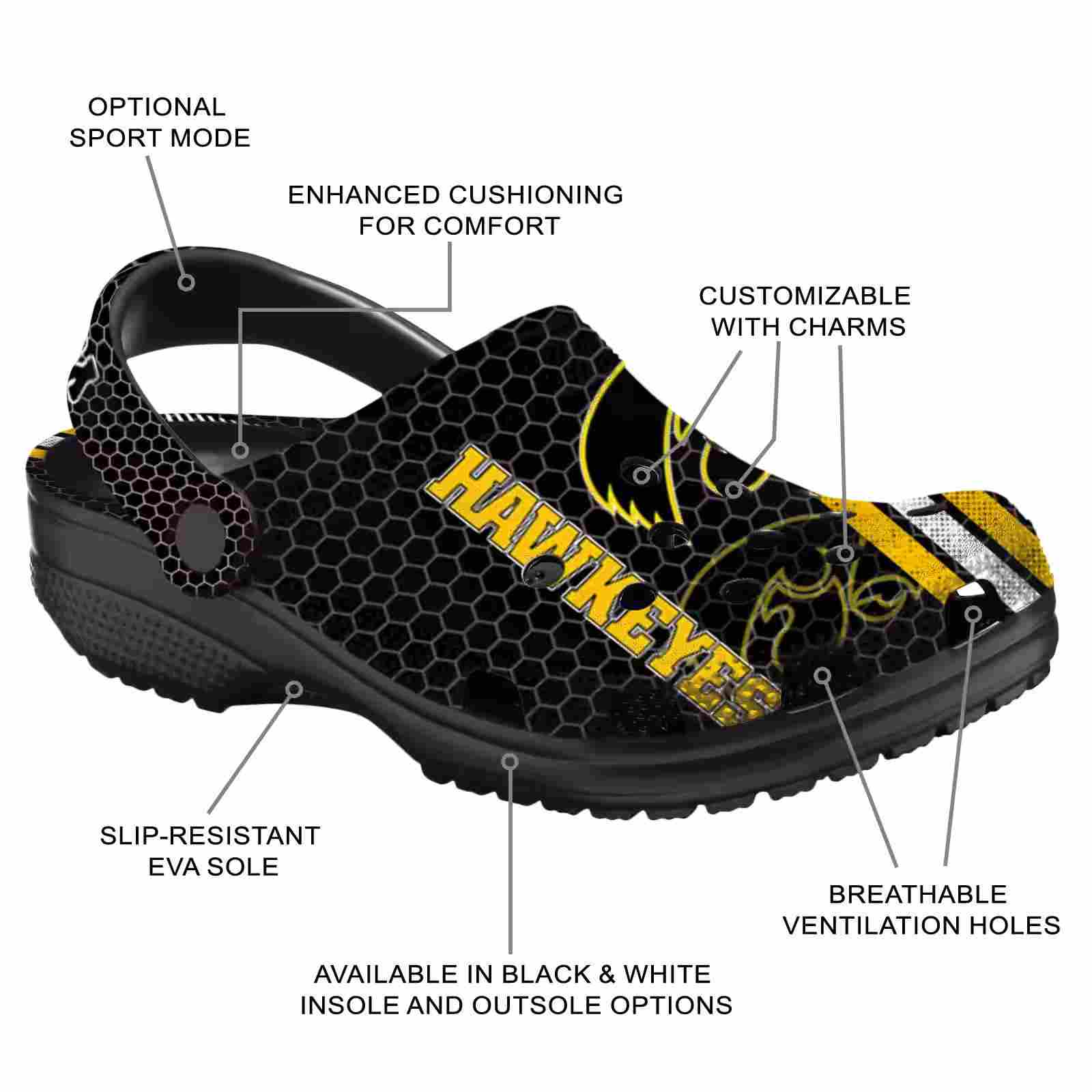 As part of our Iowa Hawkeyes Crocs and NCAA Crocs collections, these unique Clog are designed to let your love for your favorite shine bright.