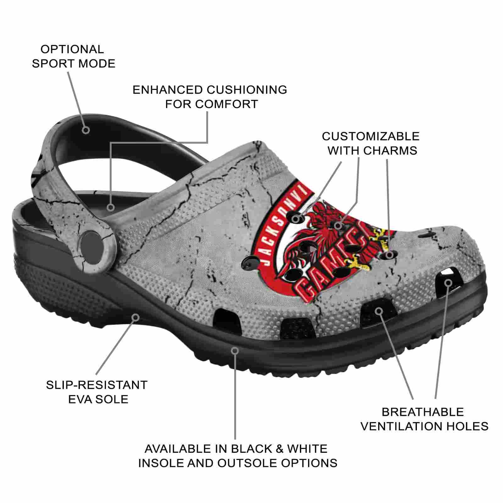As part of our Jacksonville State Gamecocks Crocs and NCAA Crocs collections, these unique Clog are designed to let your love for your favorite shine bright.