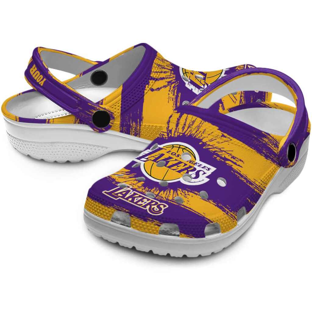 Customized Los Angeles Lakers Paint Splatter Graphics ClogTVC1801919