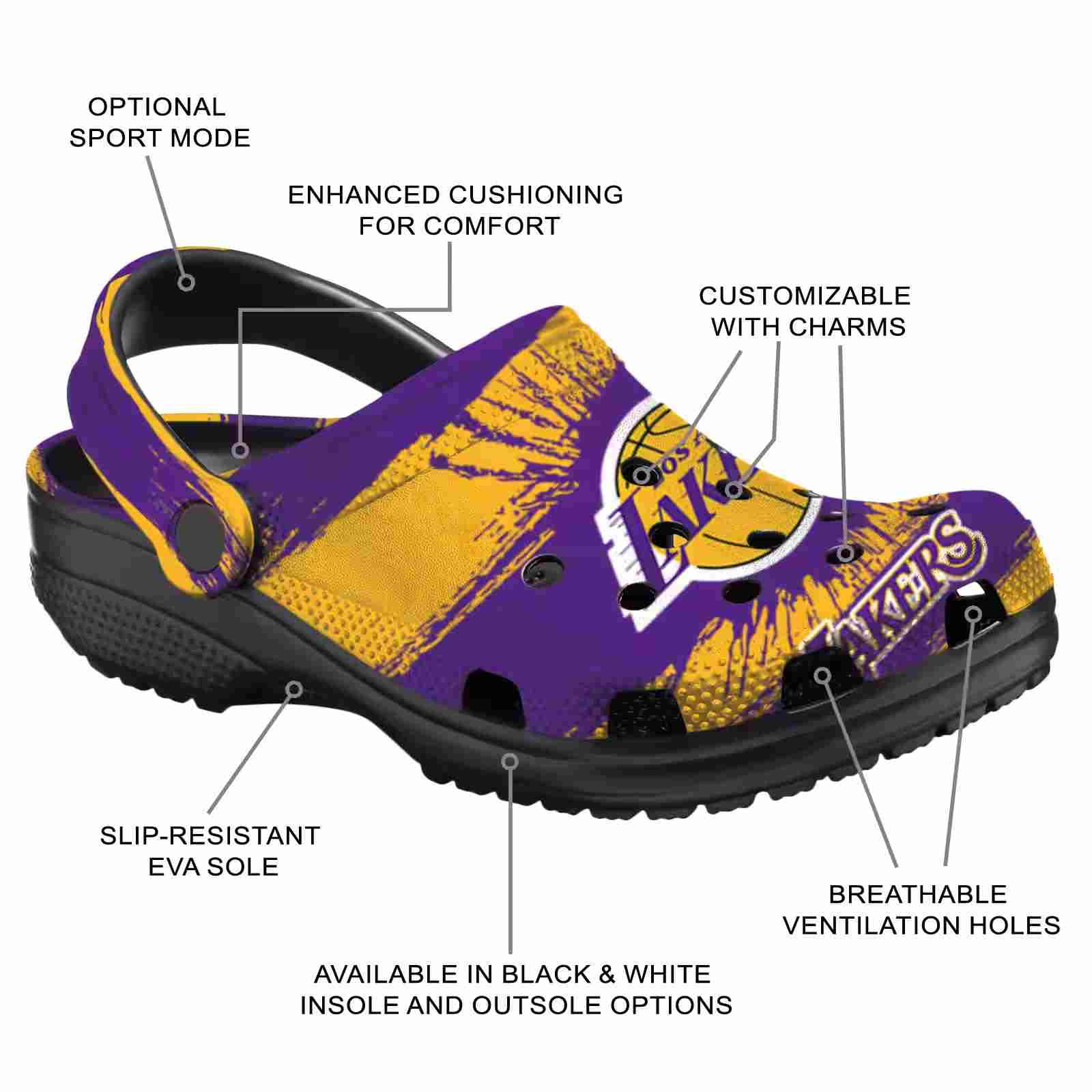 As part of our Los Angeles Lakers Crocs and NBA Crocs collections, these unique Clog are designed to let your love for your favorite shine bright.