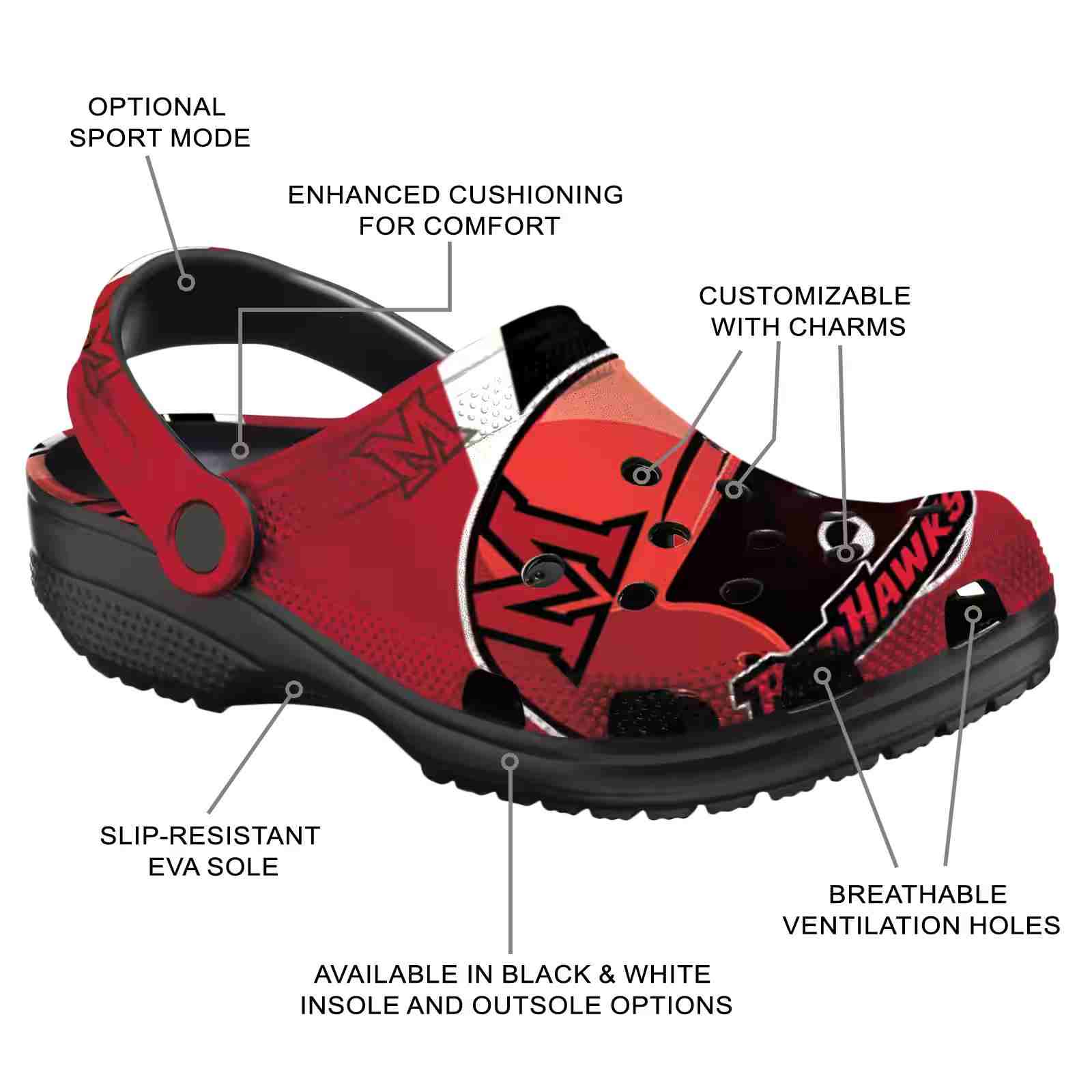 As part of our Miami RedHawks Crocs and NCAA Crocs collections, these unique Clog are designed to let your love for your favorite shine bright.