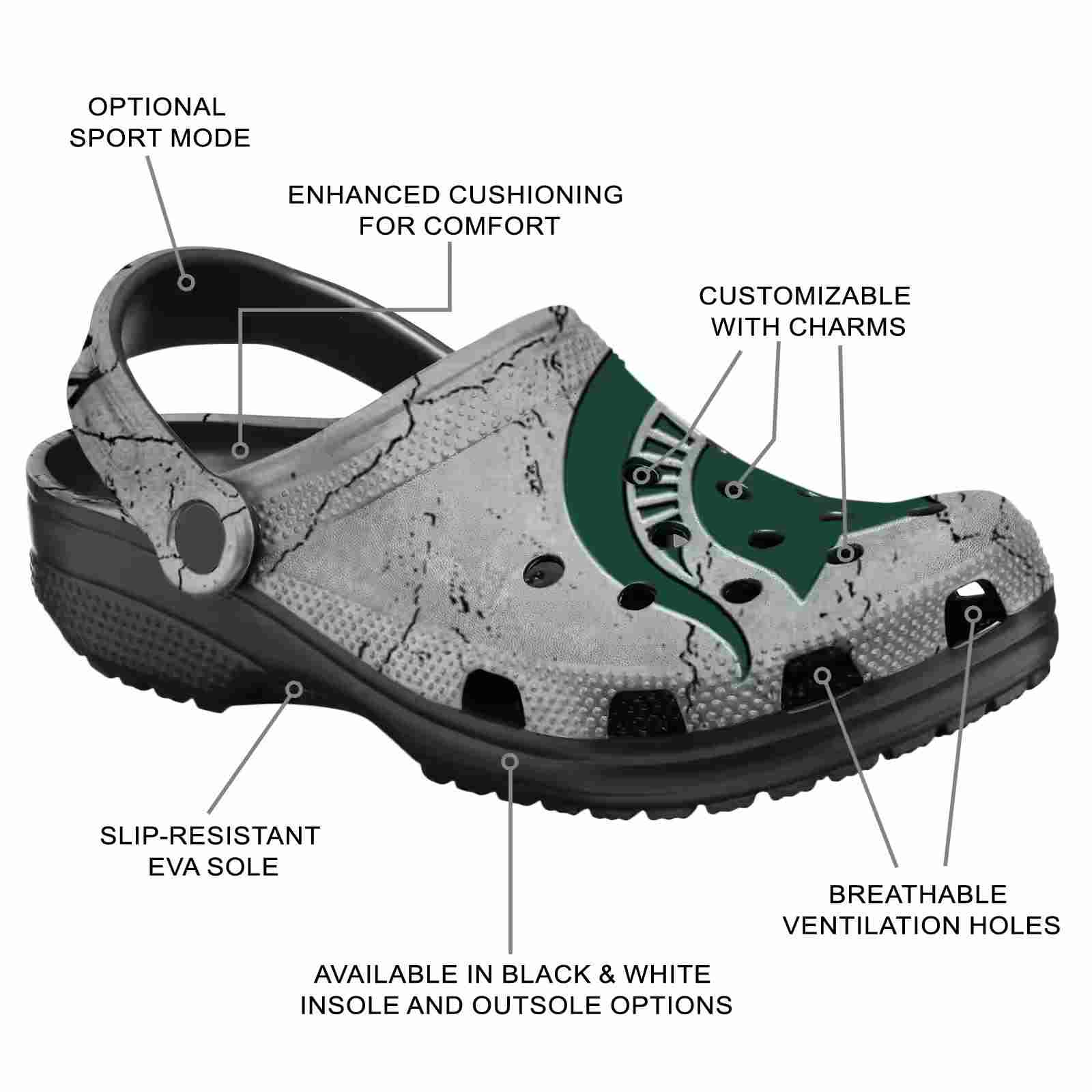 As part of our Michigan State Spartans Crocs and NCAA Crocs collections, these unique Clog are designed to let your love for your favorite shine bright.