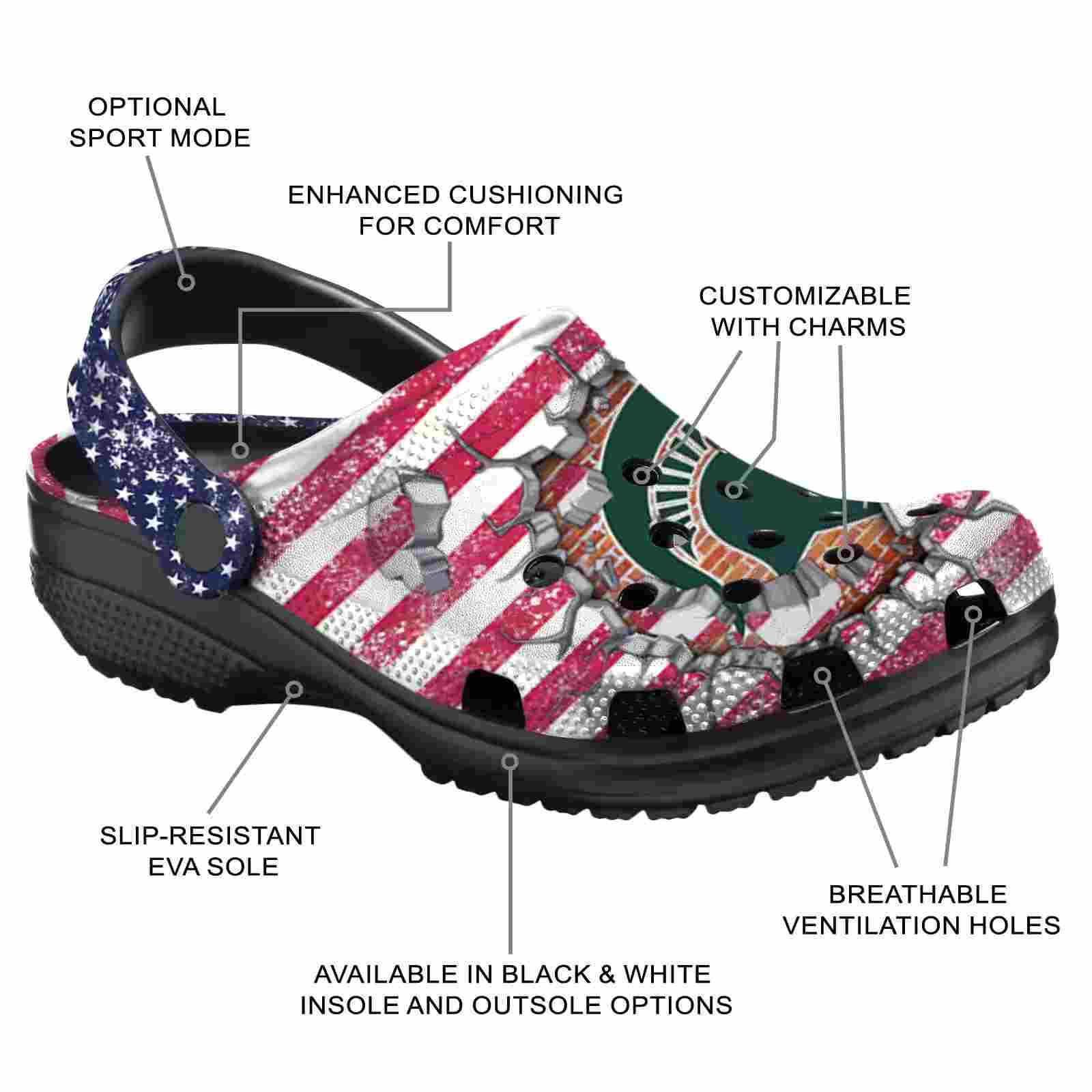 As part of our Michigan State Spartans Crocs and NCAA Crocs collections, these unique Clog are designed to let your love for your favorite shine bright.