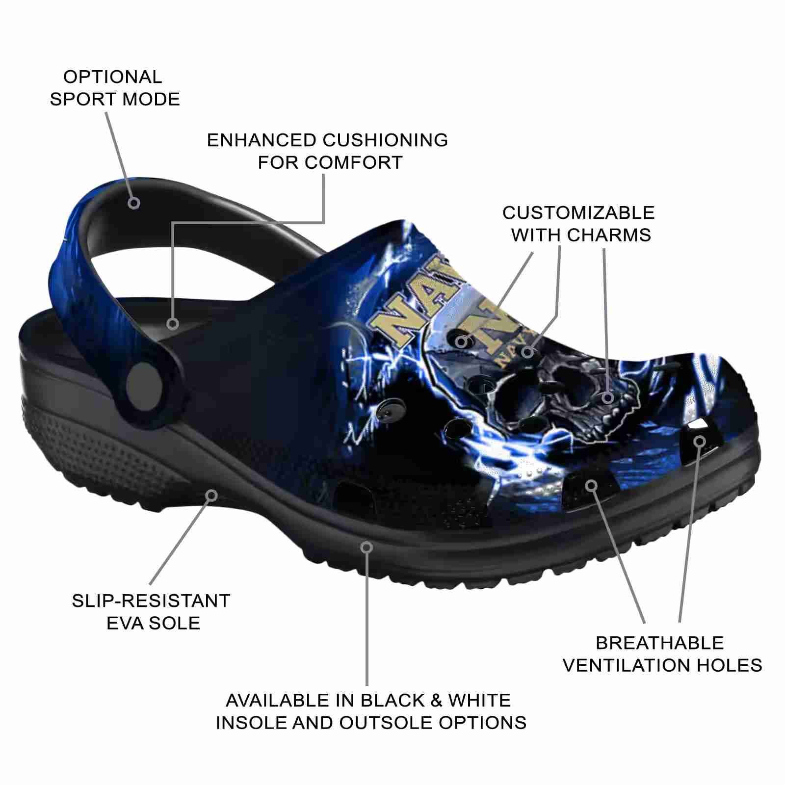 Customized Navy Midshipmen Gothic Skull ClogTVC1801817