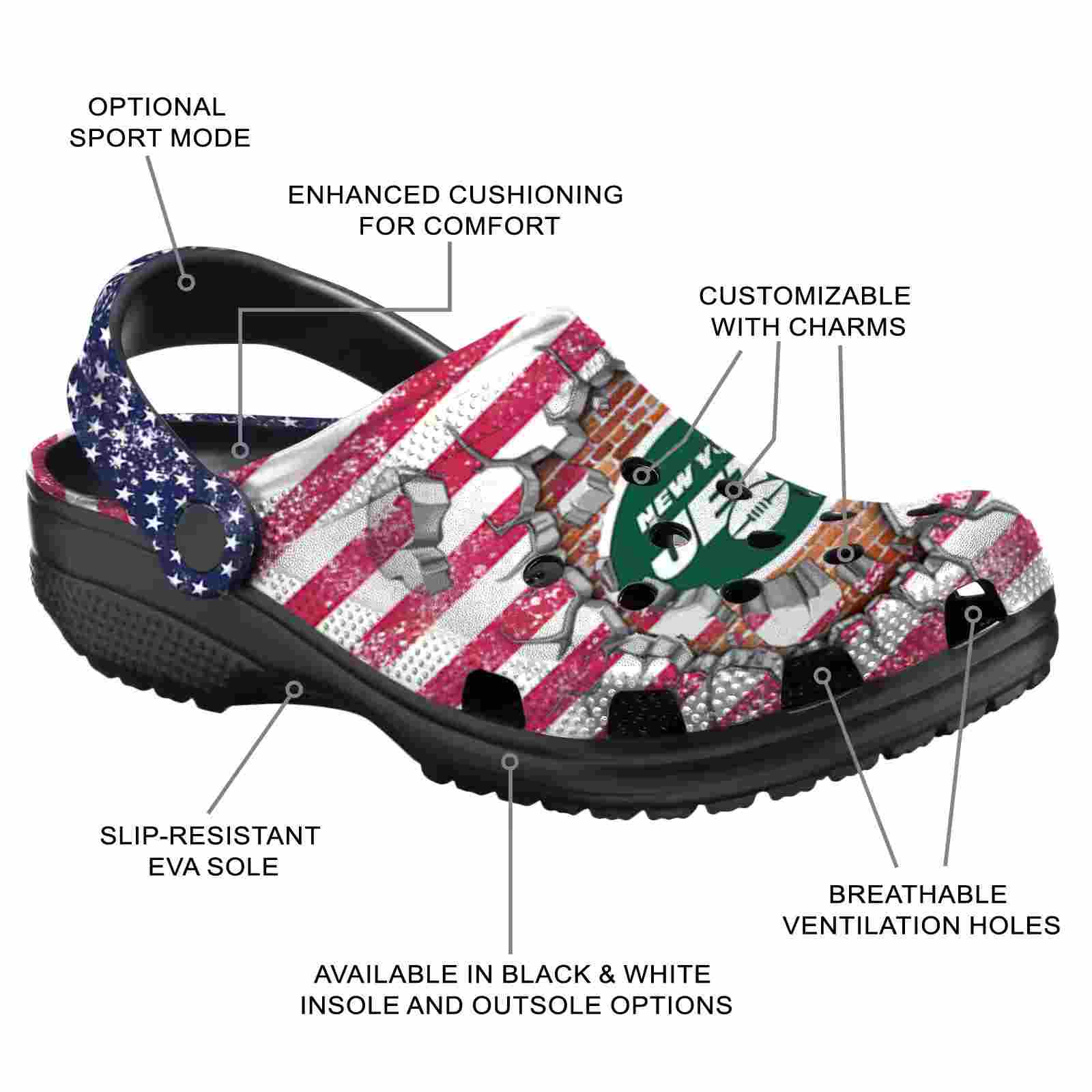 As part of our New York Jets Crocs and NFL Crocs collections, these unique Clog are designed to let your love for your favorite shine bright.
