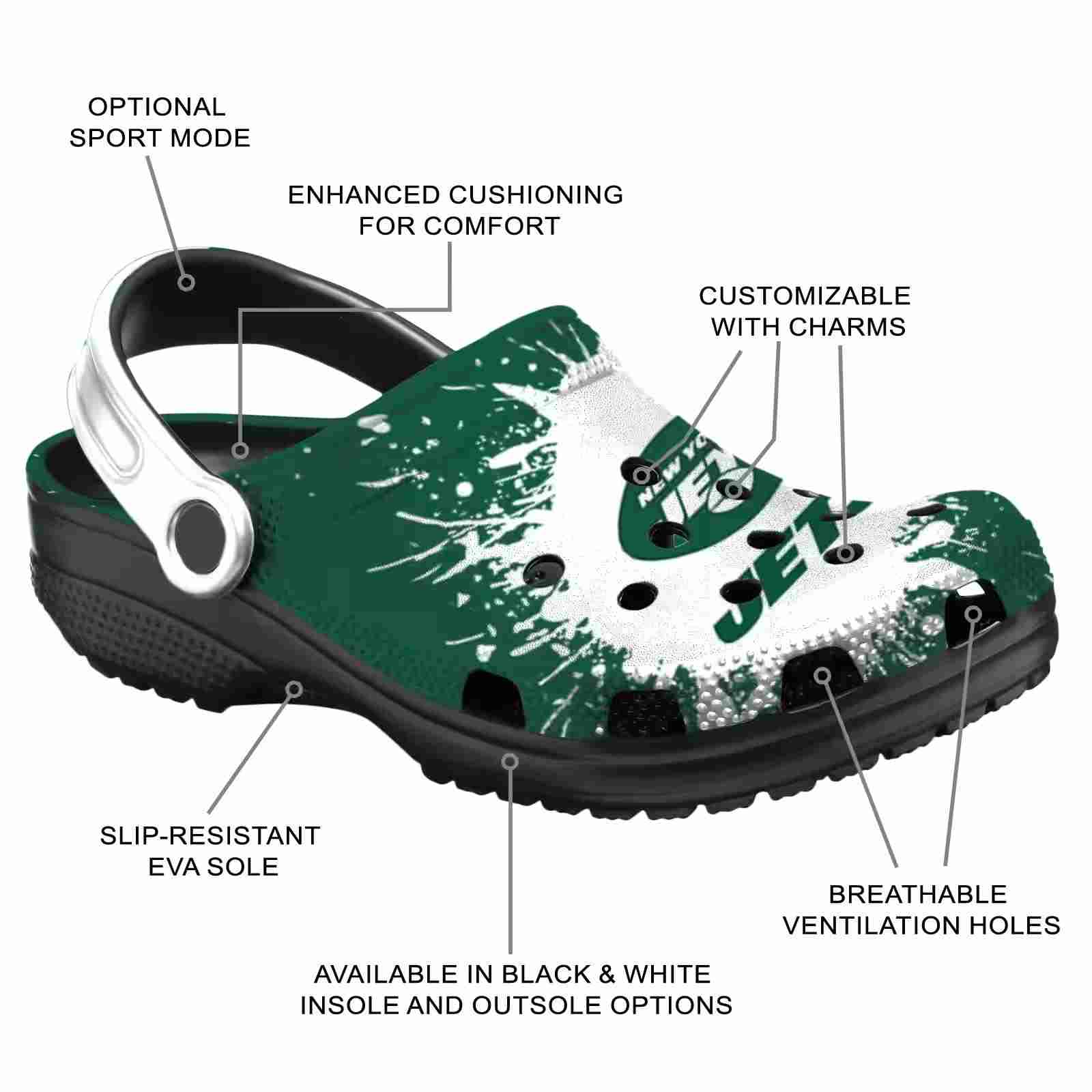 As part of our New York Jets Crocs and NFL Crocs collections, these unique Clog are designed to let your love for your favorite shine bright.