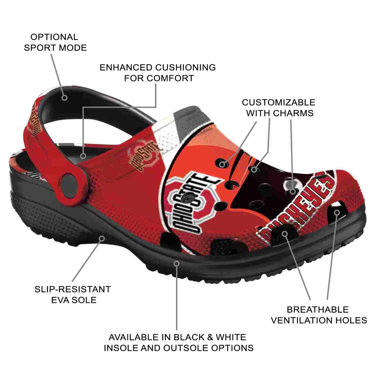 As part of our Ohio State Buckeyes Crocs and NCAA Crocs collections, these unique Clog are designed to let your love for your favorite shine bright.
