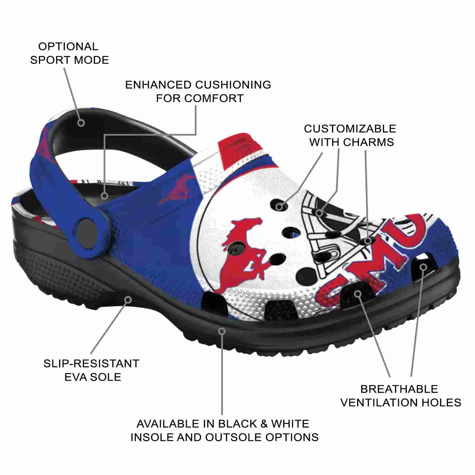 As part of our SMU Mustangs Crocs and NCAA Crocs collections, these unique Clog are designed to let your love for your favorite shine bright.